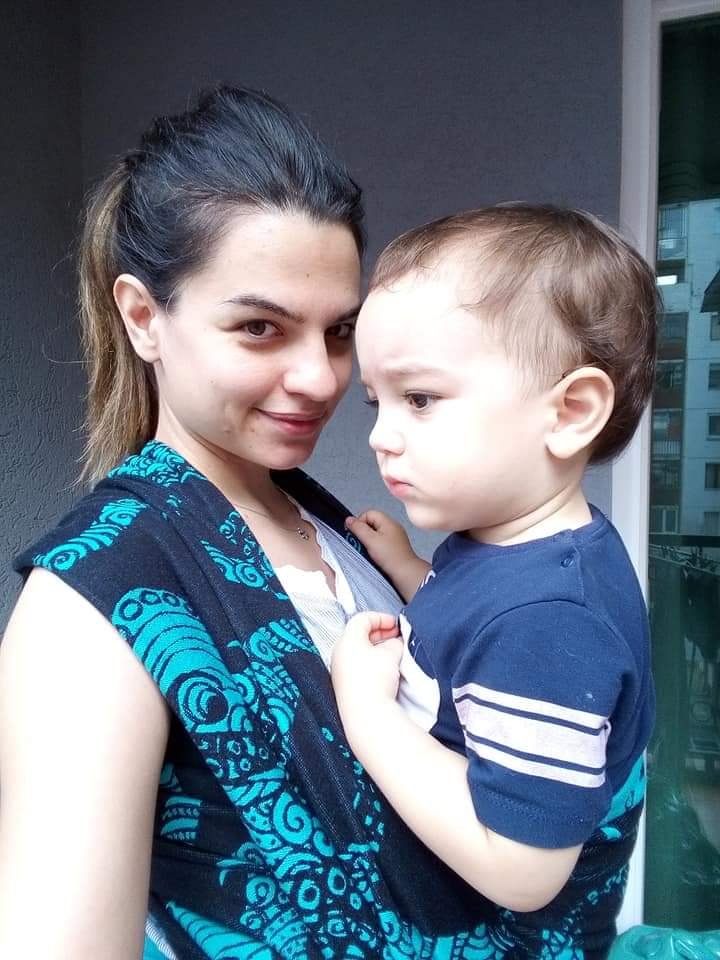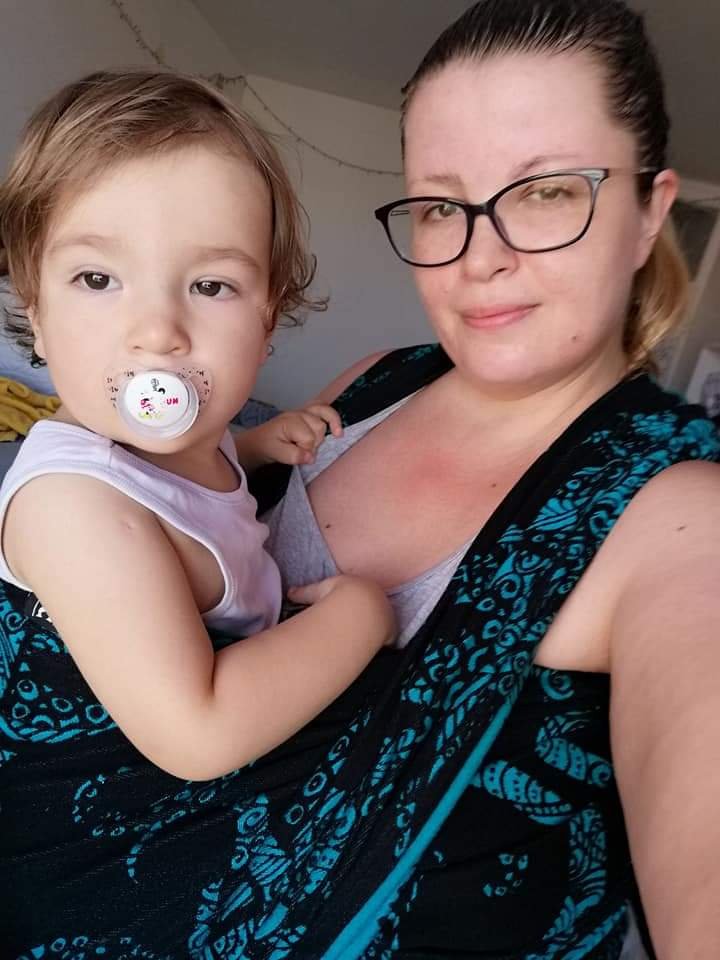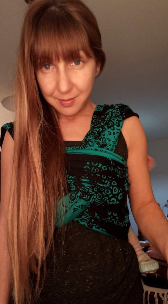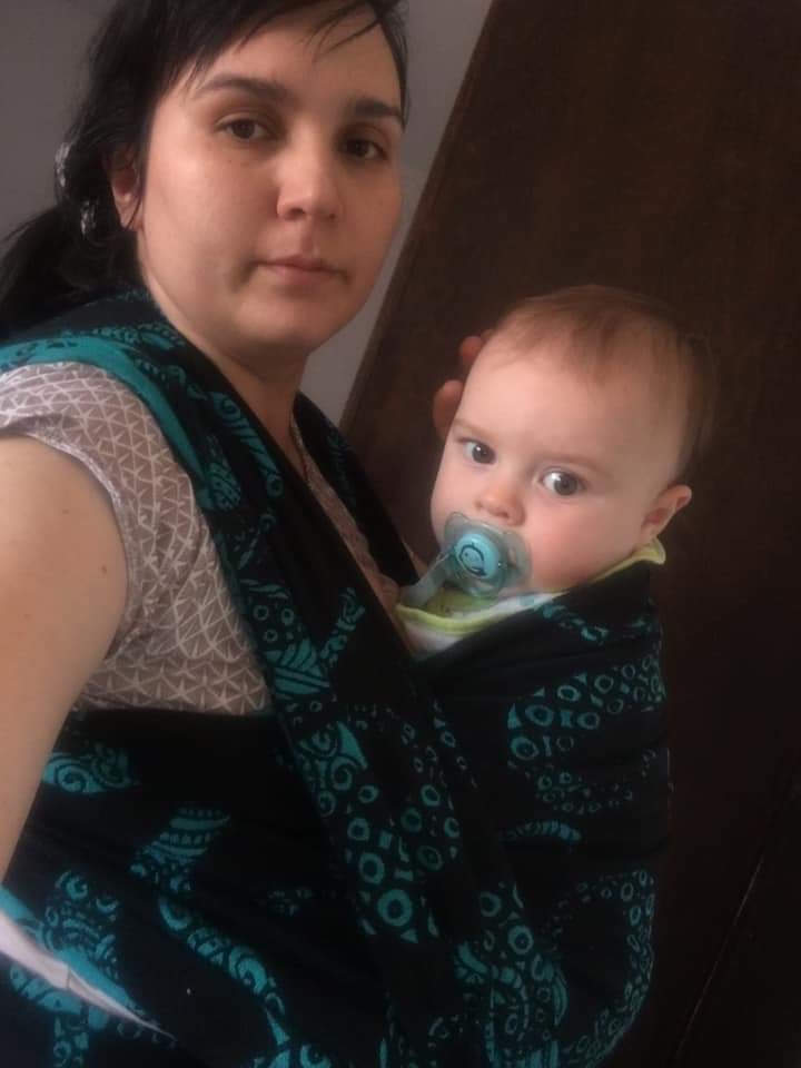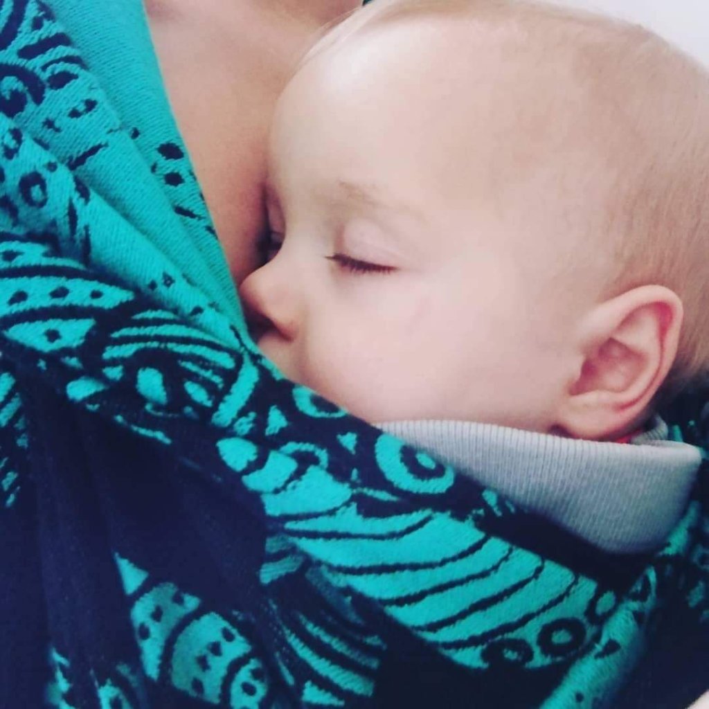 Thanks to Luluna Slings and Lena’s traveling carriers I have opportunity to try woven wrap Luluna Kraken Lazure Depth size 6. Firsth to all I love color of wrap because it match with son’s eyes. Second it is very soft and easy to wrap. Perfect begginer wrap. With my baby (11 month, 10 kg) I try front and back carry with diffrent finishes. Also I try with my oldest daughter ( 4 year, 15+ kg) and it hold her great. We enjoyed a lot because it’s came when my boy only fall a sleep while carrying him in wrap. Thank you for this oportunity.