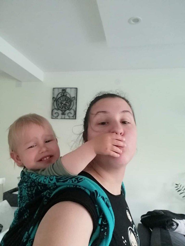 Sooo, since I am an apsolute beginner when it comes to woven wraps,and my wrappee wasn’t really into idea of being patient and let me practice (17 months old, there is no time to be still and not explore the world 🙈) this is pretty much the best we accomplished in a few days 😂😴