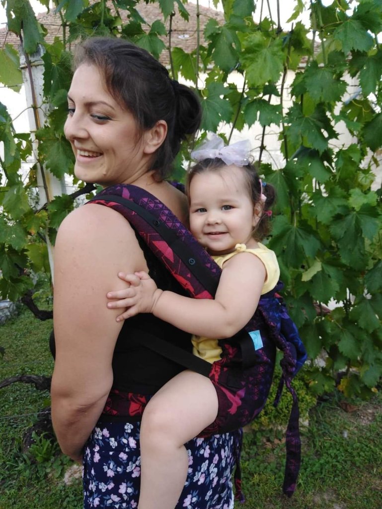 I am grateful for the opportunity to use this carrier. I had it with me for about a month. At first I didn’t adjust everything in the right way so I didn’t really enjoy it. I had back pain. After some time and thanks to some advice from more experienced women I managed to imrove things and it was way better. It is a beautiful carrier, the material is soft and the colours are wonderful, my favourite. After all, I would recommend it to others, only to pay more attention to this unusual type of a belt it has, and make proper adjustments. My baby is 6 months old and weighs around 7kg. I tried putting my 2 year old niece on my back and she didn’t want to get down. 😊