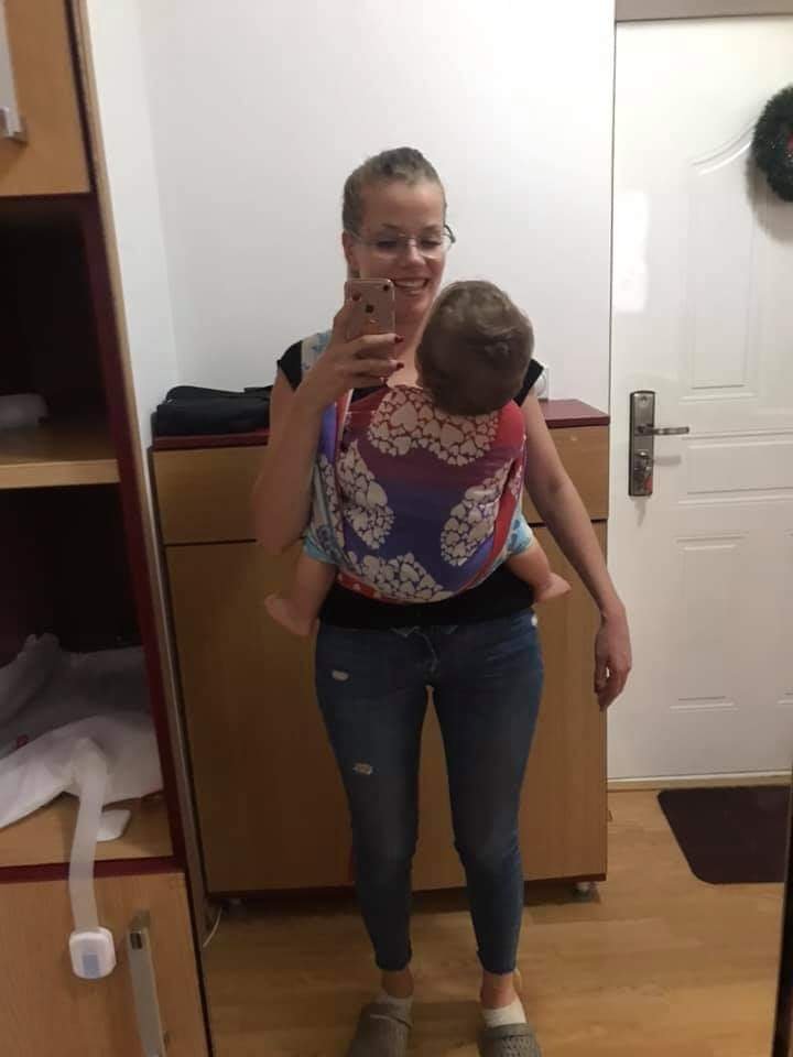 I had a pleasure to host a beautiful Joy and Joe Benevolence Allure wrap. As I had not yet had the opportunity to roll a wrap in this size (size 7), I was excited when it arrived. After I opened the box and unwrapped it, I realized that with this composition and this density, you don’t even notice how long it really is. I wrapped it with the same enthusiasm and immediately put my child. It was only then I felt the weight and density of the wrap, it was harder for me to tighten it properly. The baby is 14 months old and almost 9kg. In general, I recommend this wrap for a little bigger babies and / or more experienced wearers due to the weight and density of the wrap itself. As for the length, I rolled it without much effort even though my base size is 6. So, thanks to Lenine putujuce nosiljke (Lena’s traveling carriers) and #joyandjoe for the opportunity and experience which is this test has give to us.