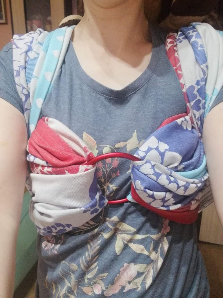 We hosted the beautiful Joy and Joe Benevolence allure woven wrap in size 7 for a few days, thanks to Lenine putujuce nosiljke (Lena’s traveling carriers). The material is nice and could use a little more breaking in, but still holds perfectly. It tightens easily. The design is great. I really enjoyed this wrap.