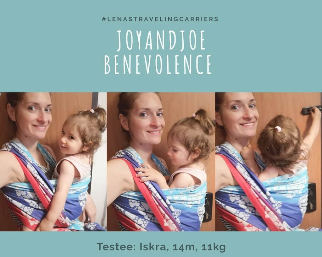 Thanks to Lenine putujuce nosiljke (Lena’s traveling carriers) for the opportunity to test Joy and Joe woven Benevolence allure in size 7. The wrap is beautiful with amazing colors. It is comfortable and easy to wrap. It will be even softer when broken in more. Baby is 9kg and 13 months and I did not feel her weight in both front and back carries.
