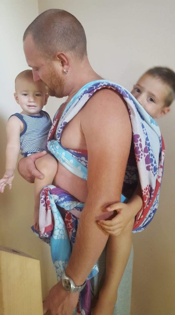 Past week I had I pleasure to host this beautiful wrap. Since I am a total beginner, and have zero experience in wrapping I was very excited when I finnaly got it. At first I was shocked how long size 7 is, but I still somehow managed to do a FWCC with my older son who is 4y+. It wasn’t easy for me, because of the size and the heaviness of all that material. What I found very helpfull was the pattern. It has different colors on the upper and lower rail and I always knew if the wrap twisted somewhere. Overall, I think this would be a great wrap for beginners, just in smaller size. But, for my husband, who is 180cm/85kg, putting this wrap on was a piece of cake. Thanks LPN for the opportunity to try this wrap, it’s an advanture more.