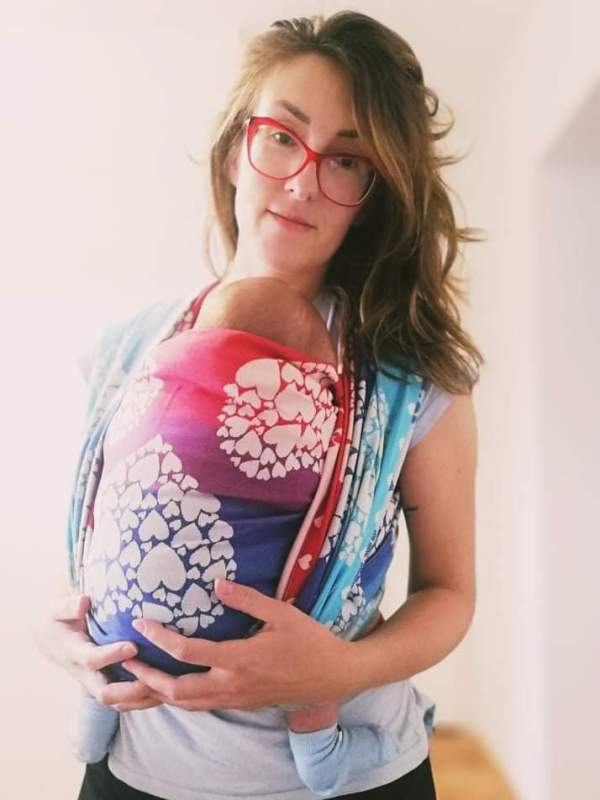 Wow!!! So big and heavy… that was my first reaction on Joe&Joy wrap, as it was my first encounter with a woven wrap. My baby is 2 months old and around 6kg, and although I thought because of the size of the wrap and me,inexperienced, it would be hard to try to carry, it wasn’t like that. Very soon we got the hang of it. At first it was a bit hard to tighten it properly, cause well,first time ever wrapping. I somehow had the feeling I had so much material in my hand while tightening but very soon I got used to it and got better in wrapping. Even although it was with us for couple of days,we managed to go hiking in the nearby mountain and climb on the high wooden viewpoint. The baby was asleep on my chest and I felt so light and motile. I didn’t feel the baby’s weight at all and the wrap somehow helped ease the pain in my back that I have since giving birth. Thank you LPN and j&j for this opportunity to enjoy this pretty colored and beautifully designed wrap.