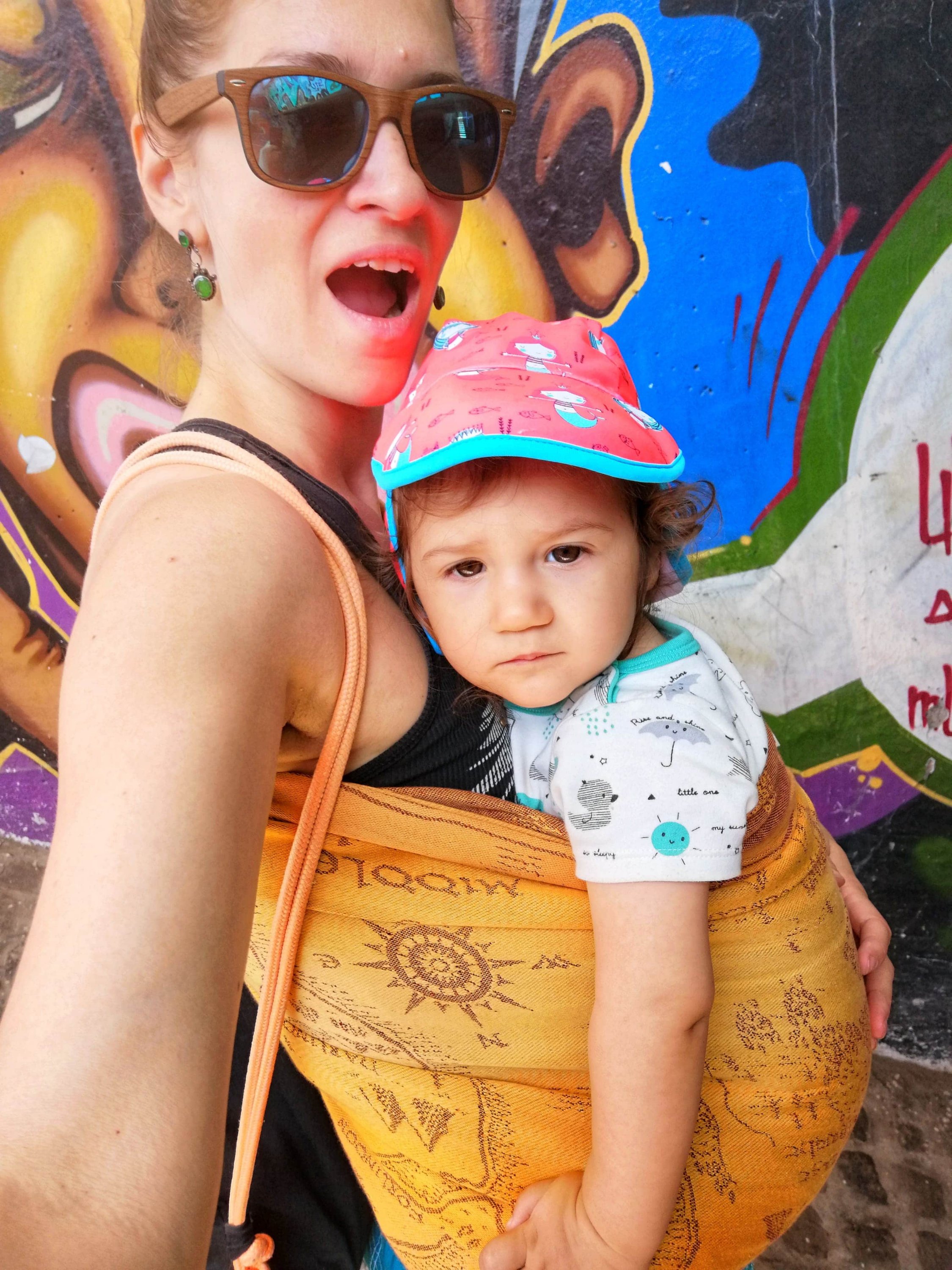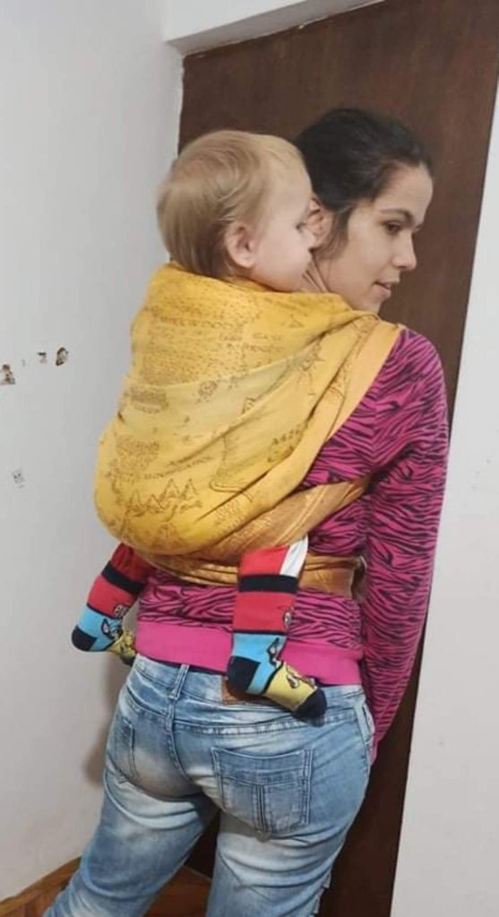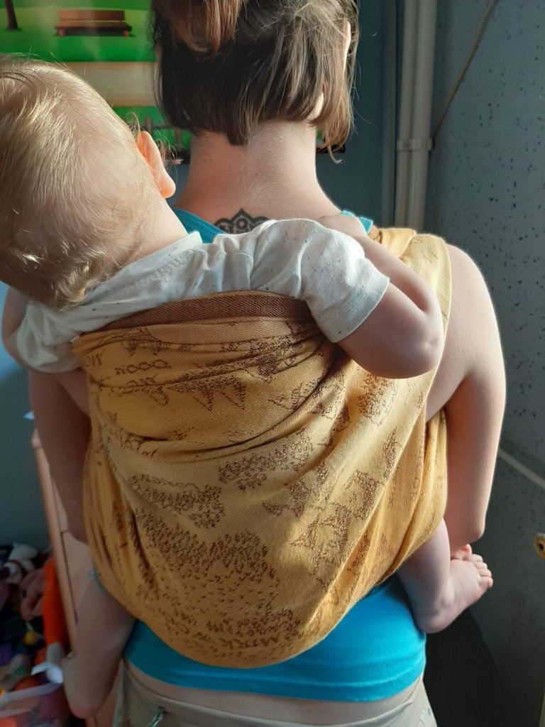 We had opportunity to try Oscha Map of Middle Earth. I really love colour and design of this wrap. It is thin but very supportive because of linen in it. With lots of glide and enough grippe to stay in the place. It is modable and easy to tie. I didn’t feel weightless on the shoulders at all. My daughters is enjoying in this beauty. They are 9 months old, 10 kg and 2 years old , 13 kg. I always think that wrap in size 3 not for me, but I wrong. This is perfect wrap in perfect size for me, I know that now. Thanks a lot for this opportunity @Oscha slings and @Lena’s traveling carriers