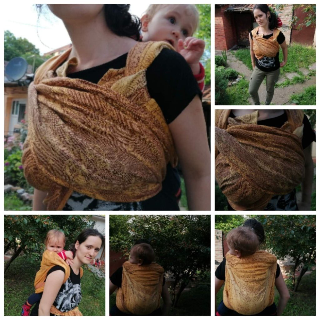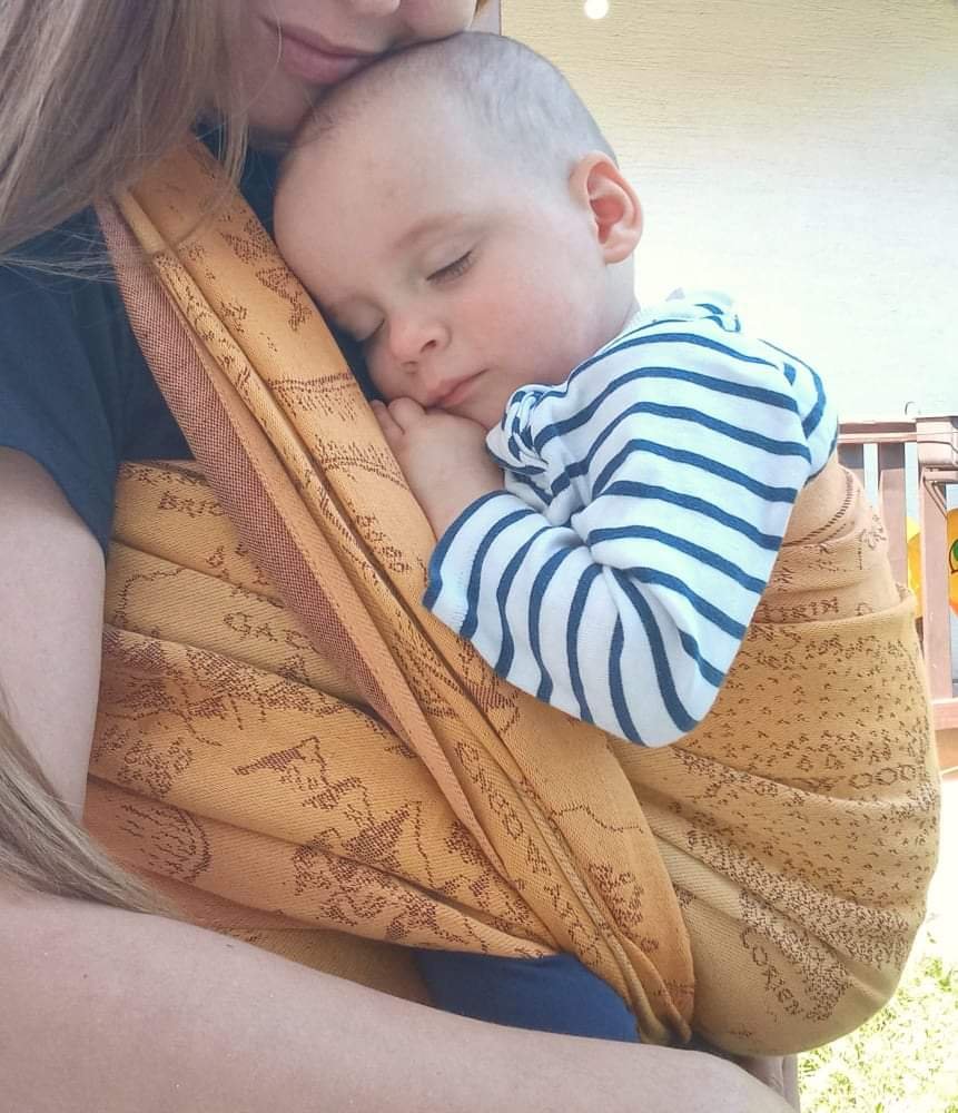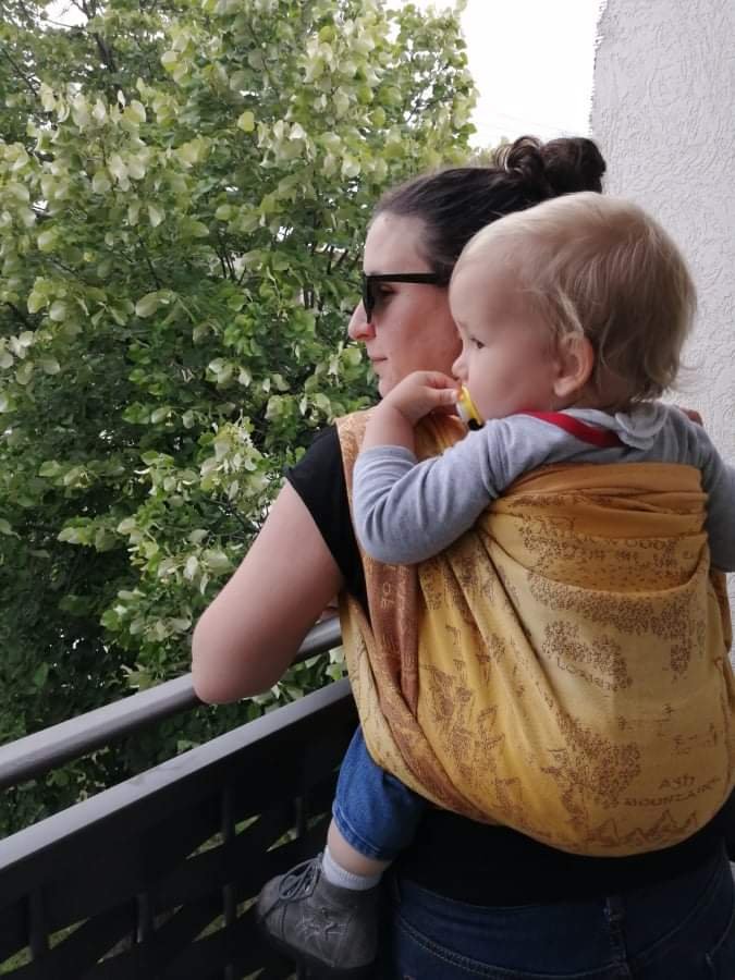 We had the honor of hosting Oscha Map of Middle Earth. Color is ideal for summer. Design is very authentic. Weaving is dense. Wrappies are 5 months, 10 kg and 2 years, 13 kg. Wrap is thin and has a lot of glide, length is ideal for Ruck Carry and FWCC TUB, but also for learning new short carries. It needs to be tightened carefully. Modable and easy to tie. Cushy on shoulders, even on long walks, I didn’t feel weightness. Medium diagonal stretch give good bounce to this wrap. Enough grippe to doesn’t move when it’s tied. Thank you for this pleasure @Oscha slings and @Lena’s traveling carriers