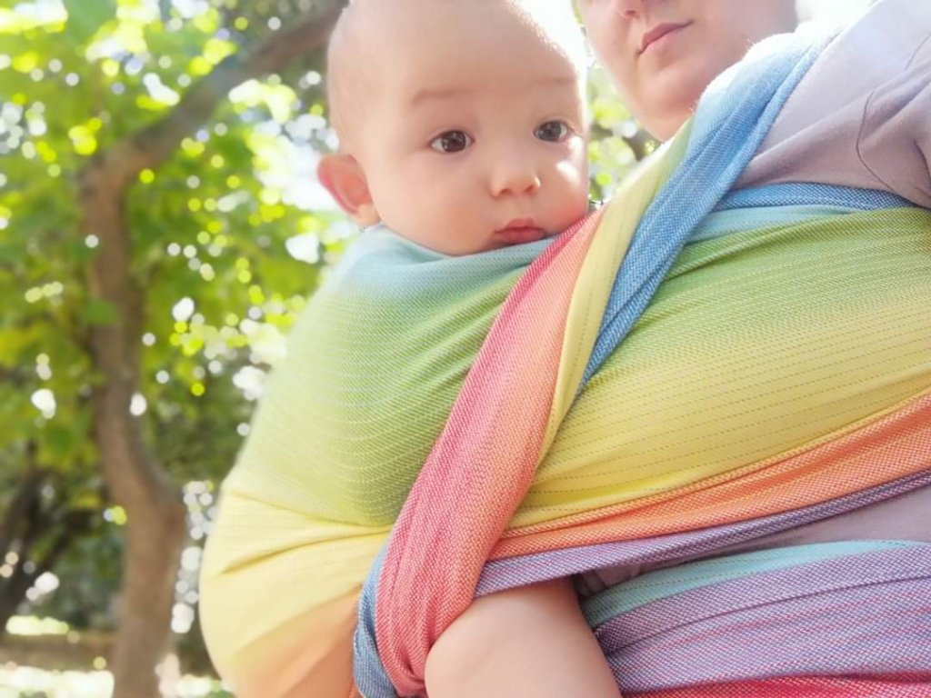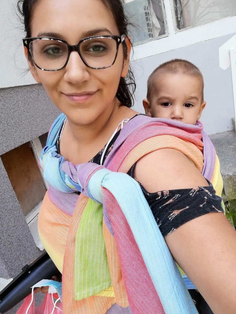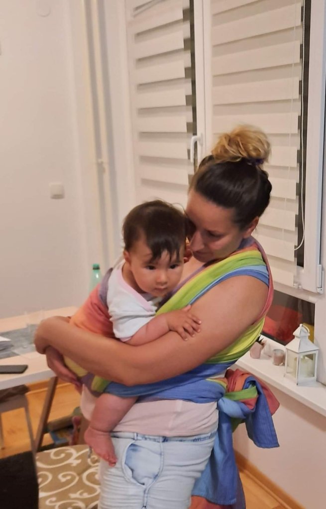 Thanks to Lenine putujuce nosiljke (Lena’s traveling carriers) and Little Frog for the opportunity to test the Rainbow Aura wrap for a few days. The baby tester is 11 months old and about 10kg. Mostly I was very careful because we just started wearing it but this wrap left a positive impression on me. I was blown away by the colors that are beautiful. My baby who normally loves everything colorful enjoyed being wrapped in it. Since I sent the wrap to other testers, I am in a difficult dilemma to buy a wrap like this, that we can constantly enjoy 👌🏻❤️