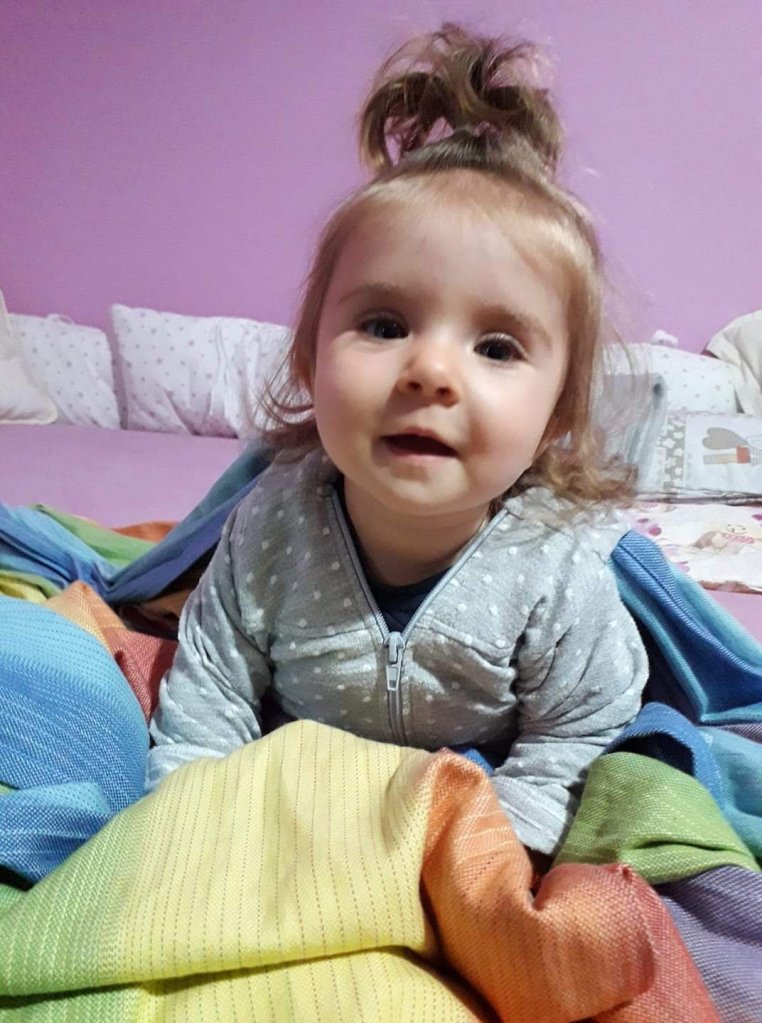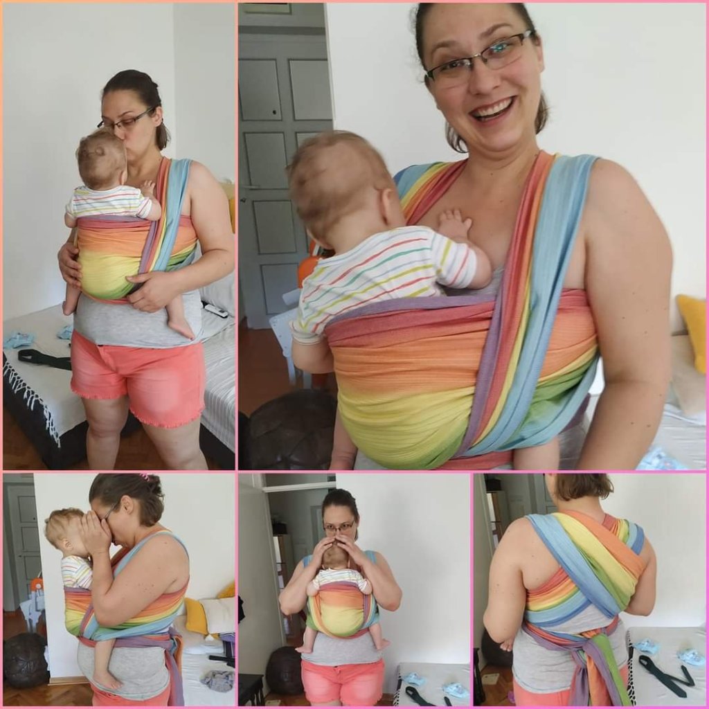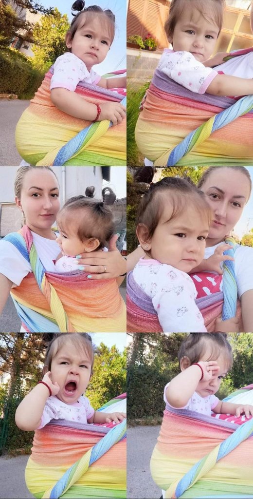 This colorful Rainbow wrap is the first wrap that we have ever tried, and I have to say that I’m amazed how soft is ❤ baby tester is 11+ months, 8kg. She was very happy while we were practising wrapping 😀 thanks Lenine putujuce nosiljke (Lena’s traveling carriers) for this opportunity ❤