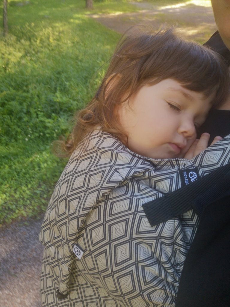 Here obviously we don’t have support from knee to knee but as not needed and legs still goes really high I would say I am really surprised and satisfied with it. Especially as this Neko goes as toddler carrier even ajudstable. Here I have used all on widest and highest adjustments as I would say Fabric set up – don’t touch anything 🙂 My older really loved it and she said it is her carrier and she is so happy she can use it.