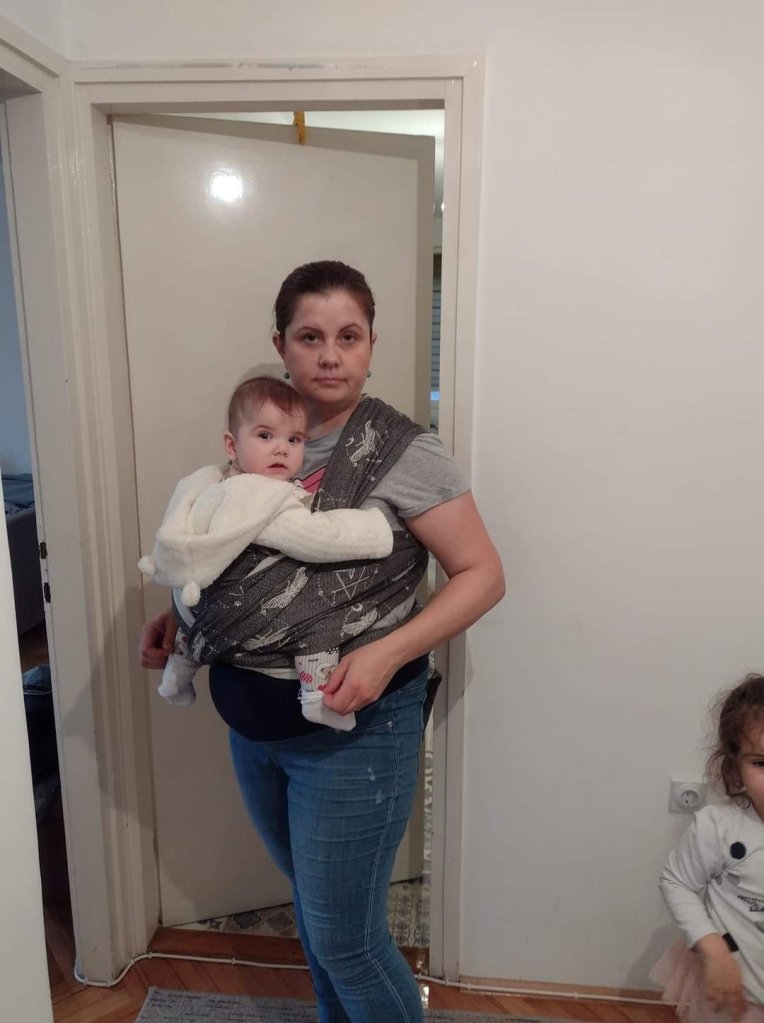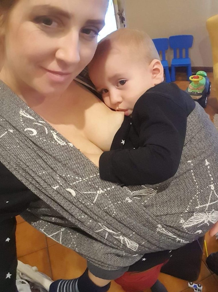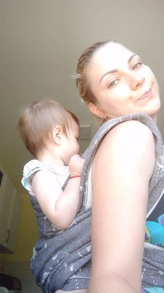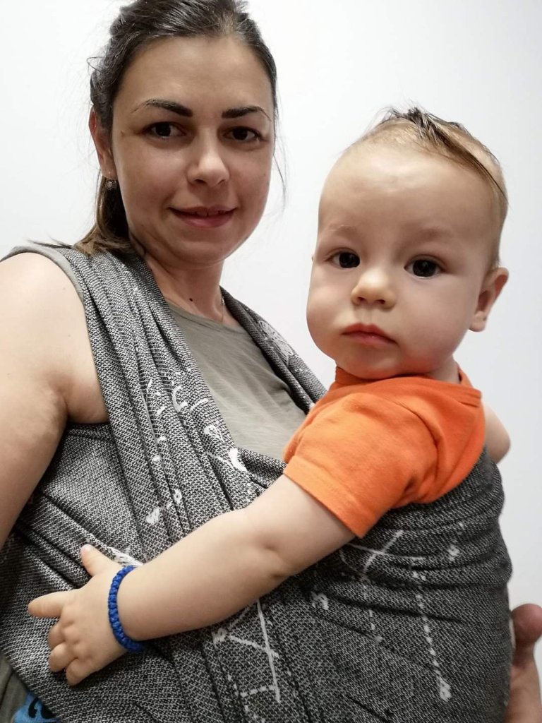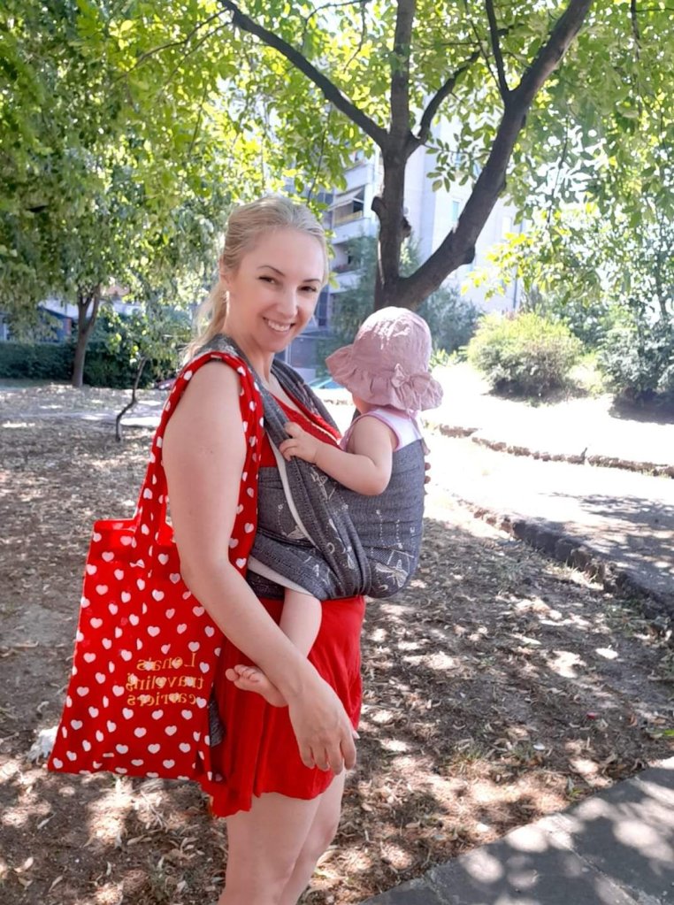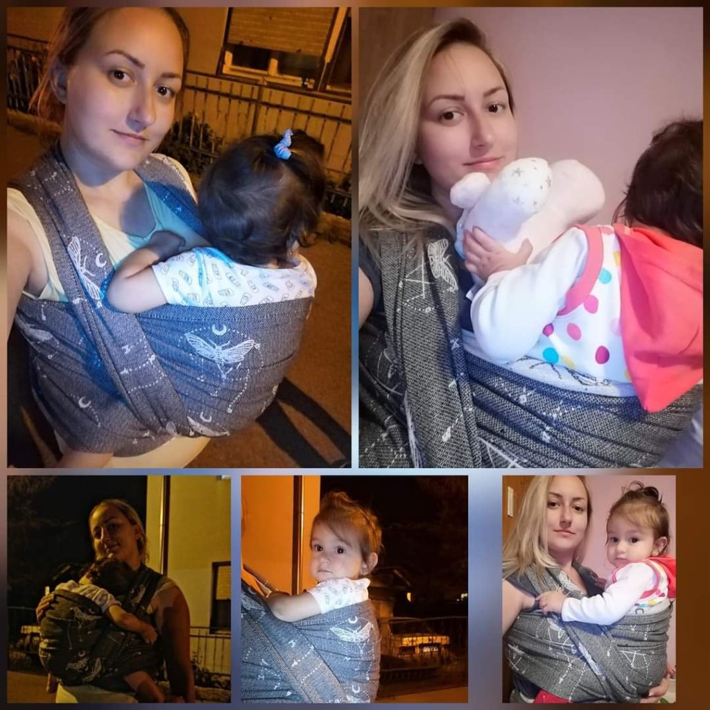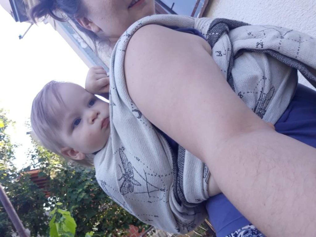 Thanks to Lenine putujuce nosiljke (Lena’s traveling carriers) I had a chance to enjoy in this remarkable wrap. First I was surprised with how light weight and airy itj is, though it is size 6! And when I touched the white side, I thought how I am going to cover my little one tonight with it, it was gentle and soft like a blanket. Something coziest I ever had on my shoulders. Easy to mold, nicely holds, perfect! Beginners, it is made for you. I fell in love in this wrap, I am so sad that those days was raining so we only had time to cuddle in it at home… Hope we meet again sometimes…