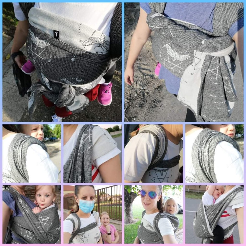 and WILD SLINGS – Backstage international ✪ I had the opportunity to test this absolutely stunning wrap Wild Slings Les Tenebres Prototype, size 6 , 50% Egyptian cotton, 50 % Vegan wool ! I’m completely wowed by it. Baby tester weighs around 10kg and wears clothes size 80. This is my first encounter with wild sling. I’m not a fan of insects, my favorite color is pink, but this wrap is a must have. Fabric is very, very soft. Even after a hand wash it’s still soft as silk (a cloud 🙂 ). It’s light, perfect for the summer. The fabric simply breathes. At the same time it kept my baby firmly in its place. Even in ruck I don’t feel the baby’s weight, my shoulders are very happy with the softness and durability of this wrap. I’m completely amazed by this wrap! ❤️😍
