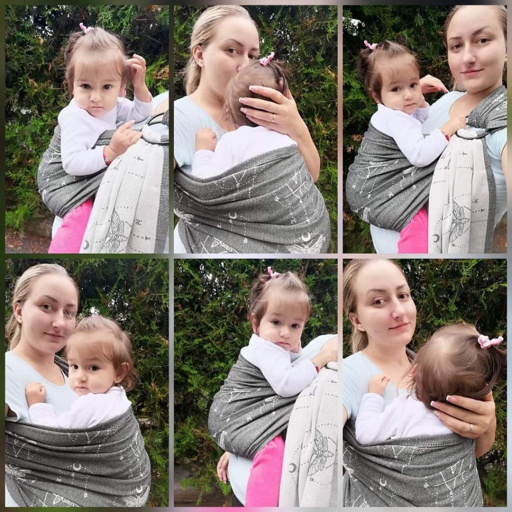 Thank you so much Lenine putujuce nosiljke (Lena’s traveling carriers) for the opportunity to test Ring Sling Wild Sling Les tenebres – Granit Wrap Egyptian combed 60% cotton and 40% vegan wool , 250gsm. During the testing period, Nikolina is 12 months and 10 kg. The sling is so wonderful and we enjoyed. The gray cotton side is beautiful while the white vegan wool is soft and it is impossible to describe how perfect it is. I am very happy with this sling and this is something that everyone should have. Warm recommendations from us and I hope we will have ours soon. 🙈😍