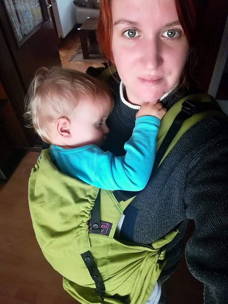 Thanks to Lenine putujuce nosiljke (Lena’s traveling carriers) and Grli Mama, we had a chance to try out this beautiful carrier. When it came,the first impression was that it’s so beautifully soft. Since the setting up is a bit different than the usual ones, I did a little research and we succeeded the first time trying. I recommend that you first see the videos for setting up, and then try out to put the baby in.🙂 the big surprise was that I didn’t feel my 14,5 months and 14 kg baby’s weight on my shoulders, cause the straps are so nicely stuffed, soft and not too big. Waist belt held phenomenally. It didn’t squeeze or bother me at all. With one word,this carrier is incredibly COMFORTABLE! It’s easy to set up and its comfortable almost like I was wearing my baby in a wrap. We enjoyed. I would gladly recommend this carrier since I believe it is as comfortable for smaller babies as for bigger ones. Thank you so much for the opportunity to try out this great carrier. 💚💚💚