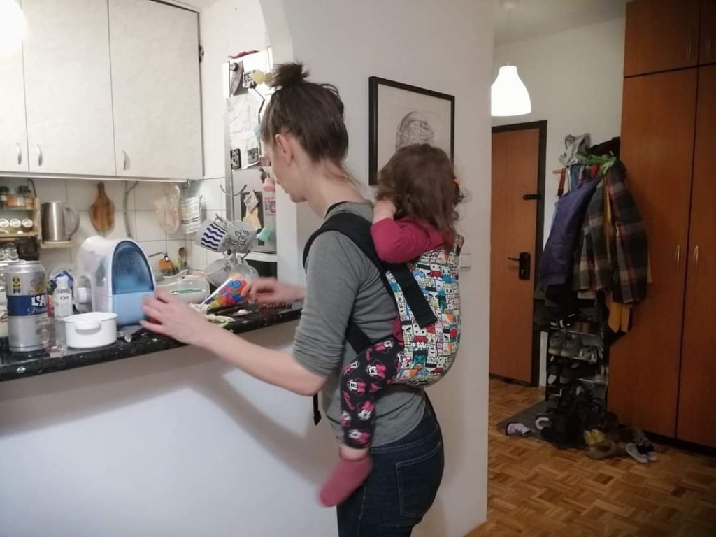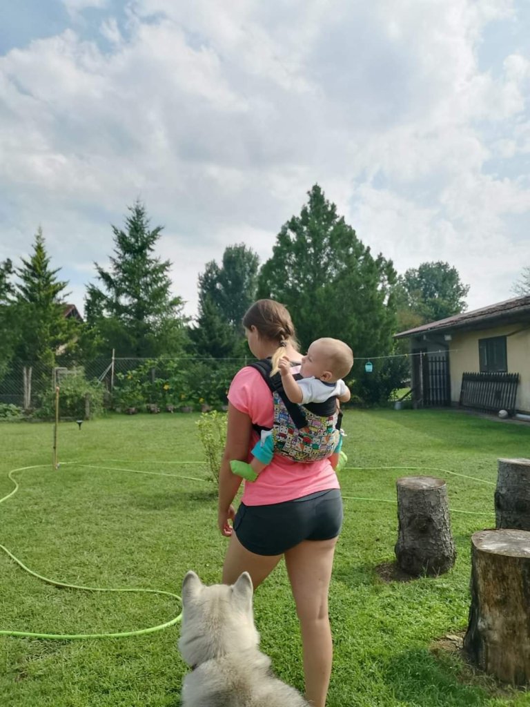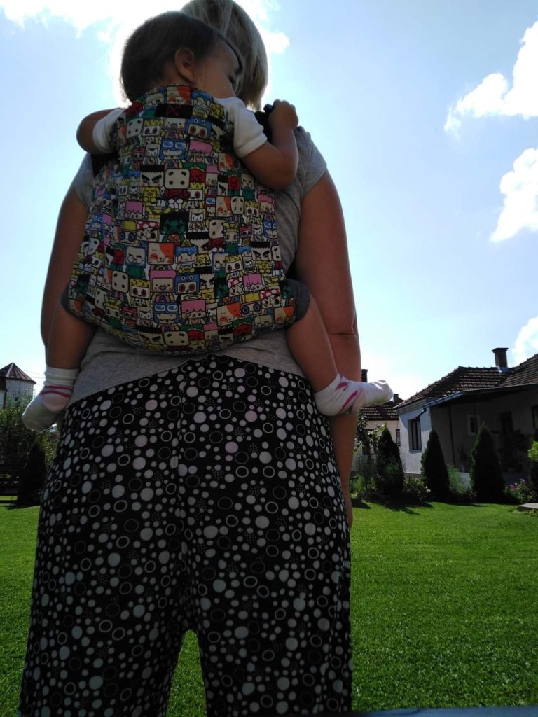 I have to be honest, I could hardly wait for the baby to grow up enough to be able to sign up for testing. As soon as the baby managed to get up by himself, I signed up for the test and eagerly waited. When the onbuhimo carrier arrived, I was thrilled with the ease of setting it up. It takes very little adjustment and you are ready to wear it. Most of all I like that the carrier is very light and takes up little space, so it is practical to always have it with you. At the time of testing, the baby was almost 11 months old and about 9 kg. Onbuhimo was super practical for me for housework or gardening, and it also proved to be very comfortable even though it is a carrier without a belt. I could easily wear it all the time while cooking lunch for us and the baby. Thanks to DracoMom Carriers doo and Lenine putujuce nosiljke (Lena’s traveling carriers) for the opportunity to try and test this great carrier. I would recommend to everyone that when the baby meets the criteria to apply for onbu test.