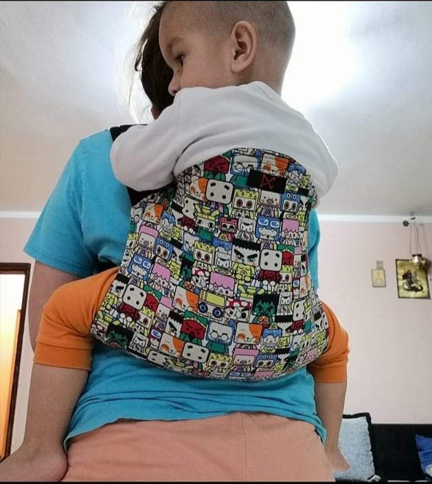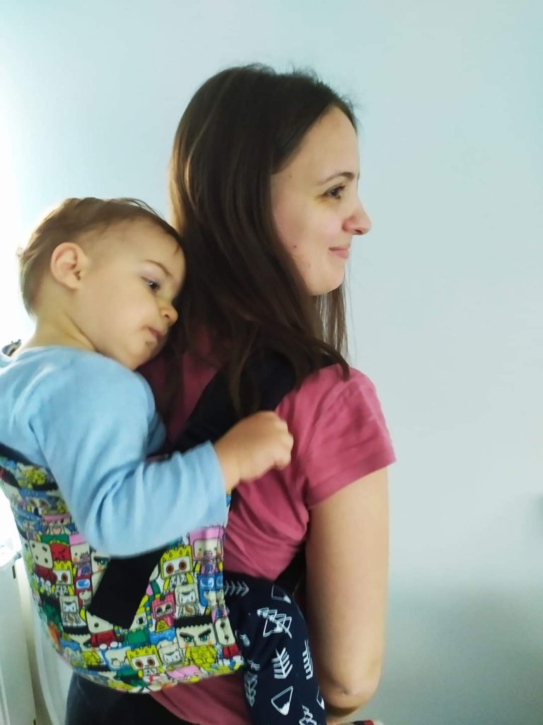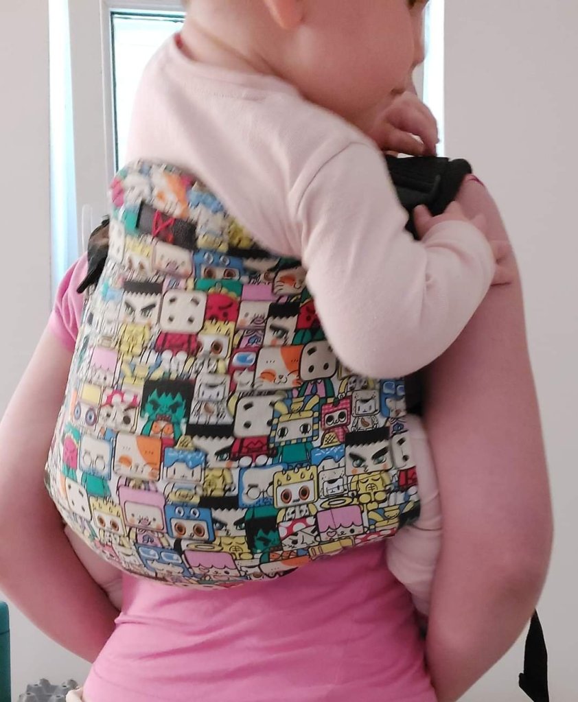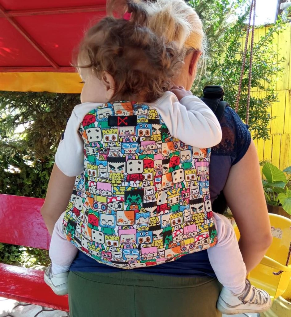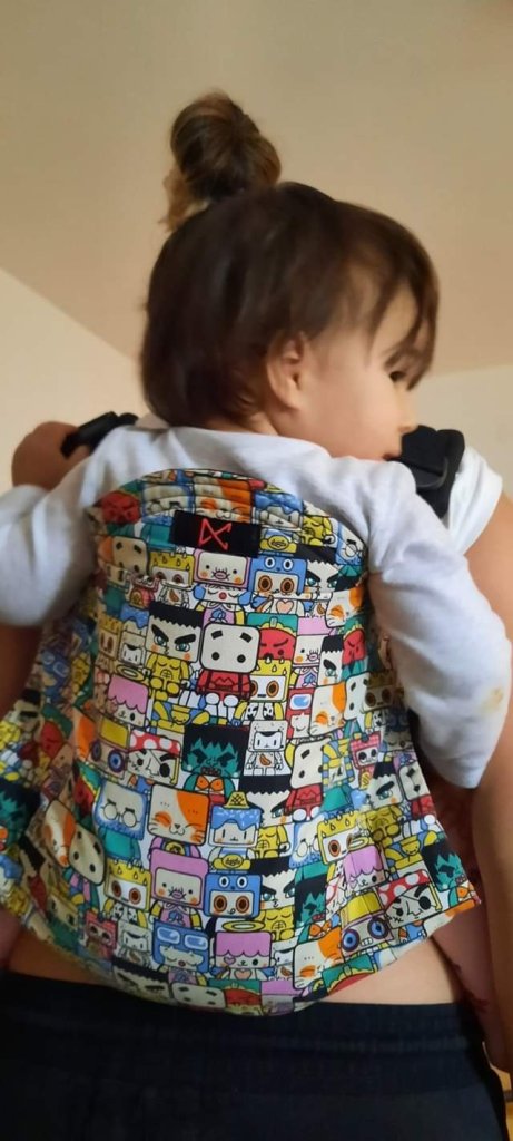 It was my first time trying out an onbuhimo carrier, and I was blown away. Easy to set up, easy to buckle up,easy to tighten, everything so easy and simple. The first time was a bit unusual for me, because of no belt, but regardless, I loved it. Especially the comic book design, so colorful and funny. Thank you, LPN and Dracomom, for this opportunity, to try put this amazing carrier.