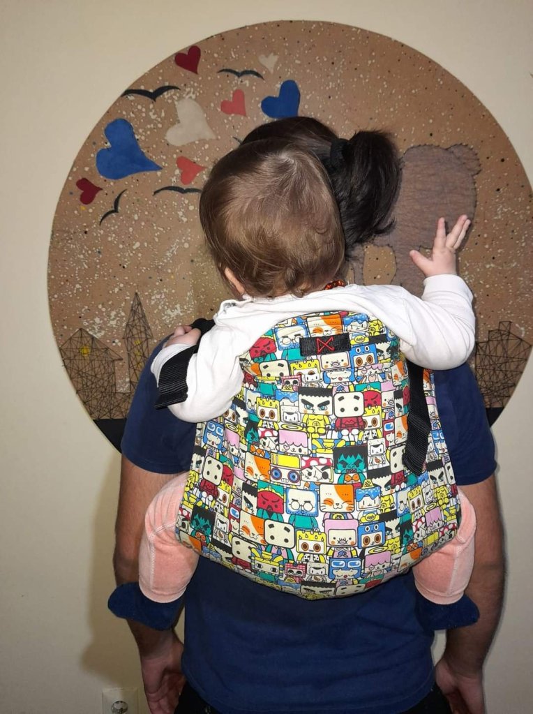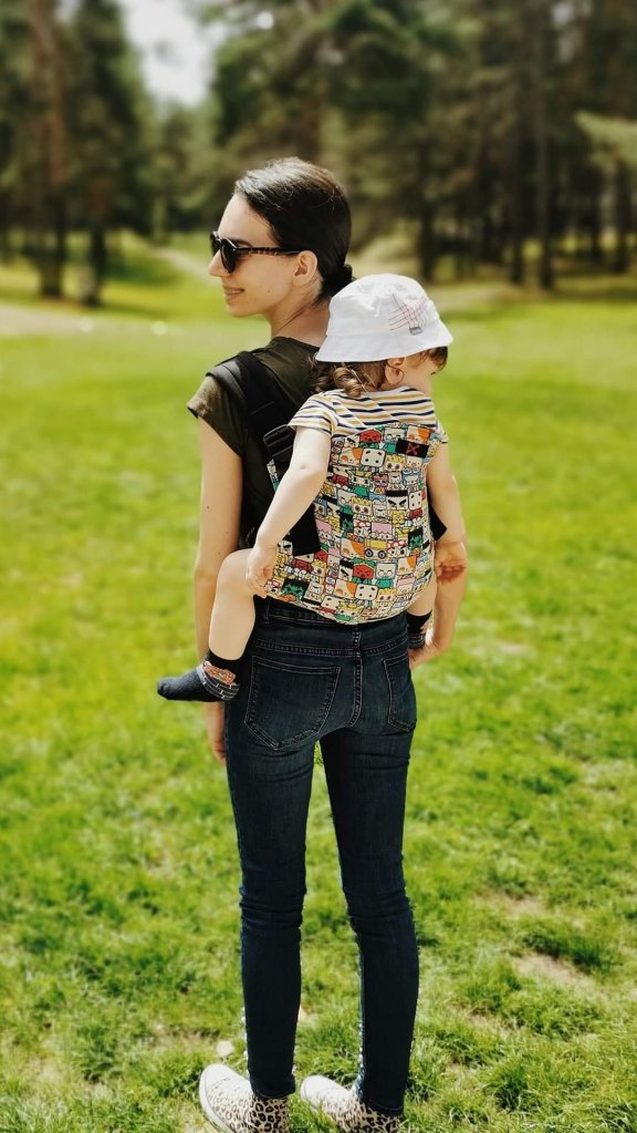 So far I have tried wraps and classic carriers, for this one I had to wait for the baby to grow up, I couldn’t wait to try it. Although it was my first contact with this carrier, I immediately adjusted the straps to make me comfortable, it fits easily on my back, the baby is happy because it has a view over my shoulder.