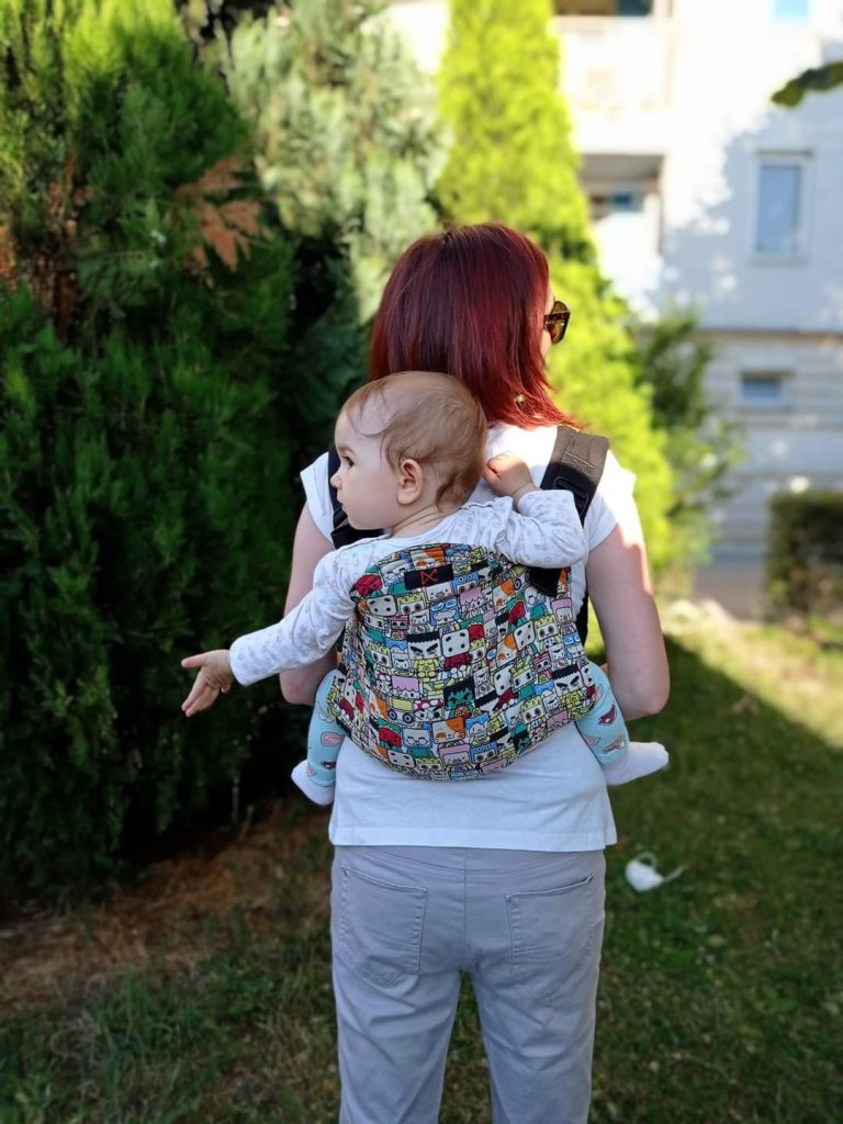 The first contact with the carrier was less successful because I hurried to put it on. With the suggestions of bw consultant Darija Maho , I managed to set up the carrier correctly and safely. The carrier is easy to adjust, the design is interesting and attractive. We most often used it to go to kindergarten and for short walks. Since we have a DracoMom ssc, when I compare it to an onbuhimo, it is more comfortable for me because of the belt, which makes it easier to carry. Thanks Lenine putujuce nosiljke (Lena’s traveling carriers) and DracoMom Carriers doo for the opportunity to try this type of carrier.