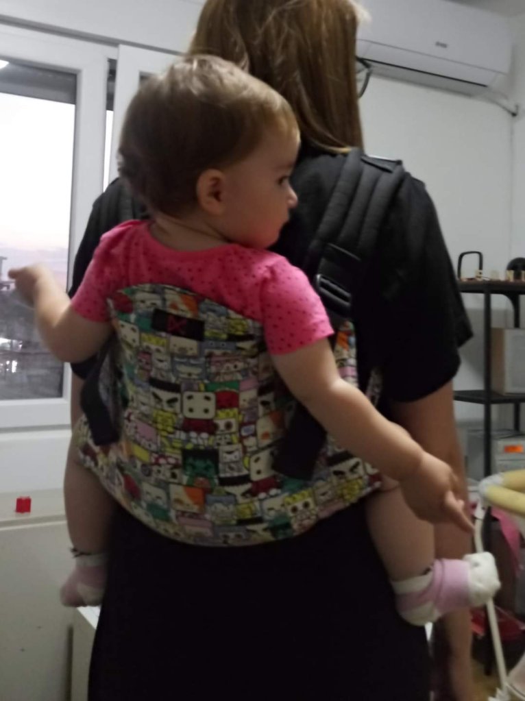 Thanks to Lenine putujuce nosiljke (Lena’s traveling carriers) and DracoMom Carriers doo we had opportunity to test this great onbu. My girl is 9mounths old and she has around 9kg. It is easy to set up and adjust. Unfortunately in those days the baby started to refuse to be carried, which is why we didn’t take pictures while she was in the carrier, but we enjoyed while she was in the mood. I’m sure there will be onbu among our baby stuff.
