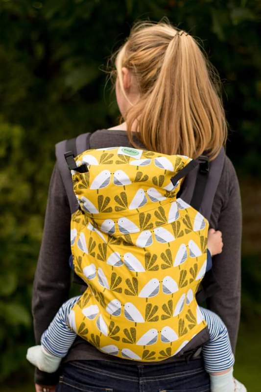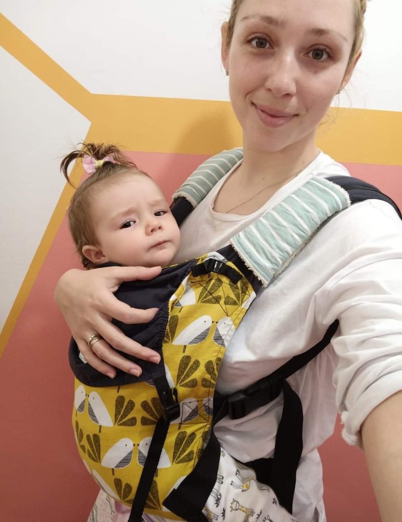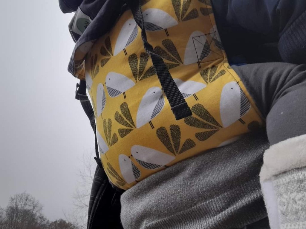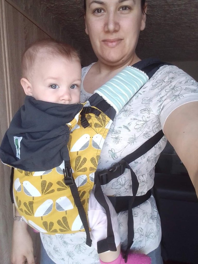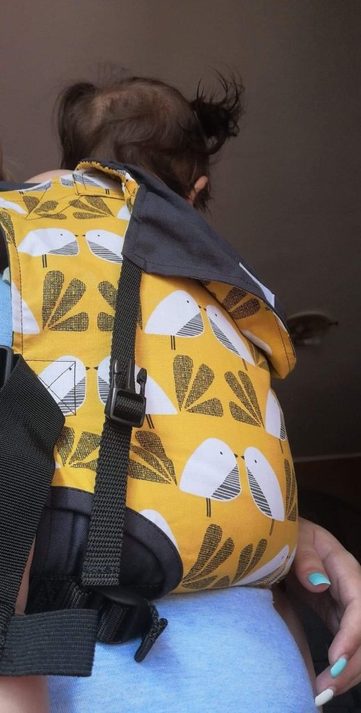 Carrier is surprisingly light and comfortable. It’s different from the other carriers I’ve tried, and I like that. The belt is thin and soft, but very comfortable. The shoulder straps are great. It’s very simple to adjust, and very simple to fold it when not using. You can take this carrier wherever you go, cause you don’t need much space, so that’s a big plus. And the colour and those little birds are just magical. My girl is 2 yo weighing around 12kg, currently more like to walk than to be carried, but when the little legs get tired she goes up, and this yellow beauty is set in a minute… I would recommend it to everyone (and I am a wrap girl, by the way 😁).