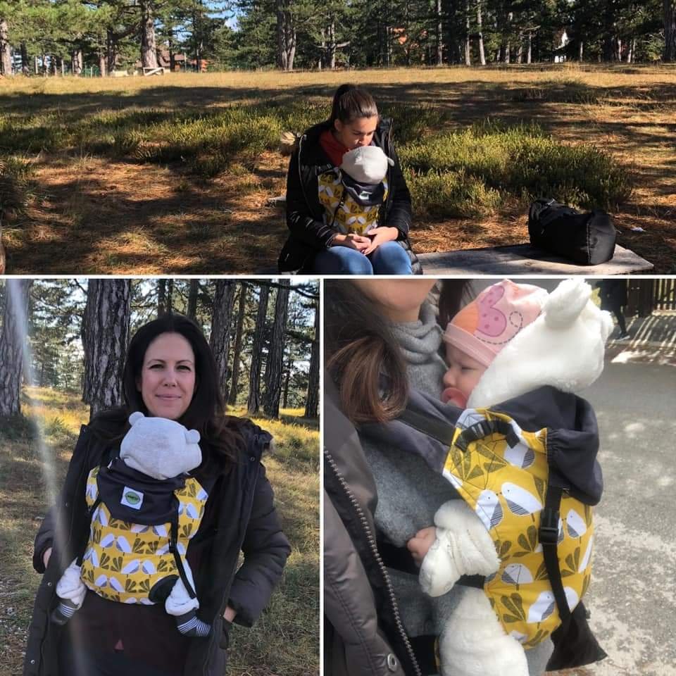 Thanks to Lenine putujuce nosiljke (Lena’s traveling carriers) I’ve had the chance to test this great carrier on our family trip in the mountains. Even though it was my first time baby wearing experience, it was easy to set it up and the carrier felt very light and comfortable. I’ve used it for long walks and there was no back pain which was my biggest concern. My twins are 3 months old, weighing around 6kg. Both babies and I enjoyed it and would definitely love to use it again.
