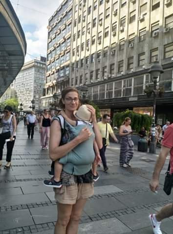 I had a honour and privilege to be among the first ones to host and test #bobax carrier in wonderful group of Lenine putujuce nosiljke (Lena’s traveling carriers) and shop Grli Mama. That way I met gorgeous Isidora Kosić, in her shop, and got very useful advices about babywearing. When i got it, I had an impression it’s so bulky and a bit complicated but soon I was dissuaded. The first thing I notice about a carrier is a belt. In this case it is adjustable, lies nicely on the stomach without cutting in. In the inner side there is a system to set up the panel width and that is done with velcro. There is a small pocket in the belt which can be used to carry small things like keys,money, I just don’t use the phone around my child. The panel can be highned, with a help of height adjustments set on the side,which is a good thing when you carry a toddler. Outward there is a pocket where a hood is kept,with buttons. Watching a tutorial videos I noticed it can be used on smaller babies as neck support. When the hood is not used it can be rolled up and back in the pocket. It has very long straps that make reaching it when you carry on your back or when the baby needs protection from sun,wind or rain. Shoulder straps are wide and very comfy. At the very end I realized there is a possibility to cross the shoulder straps, which I really like but didn’t use. This is the first carrier I used that has very practical slide straps between the shoulder straps, that eased the setting up and tightening it. My evaluation is 10/10. Easy to use,comfortable, multifunctional carrier, or as I called it “mini condo for the baby”. Thanks again for this opportunity #lenineputujucenosiljke and #grlimama to carry a phenomenal #bobax.