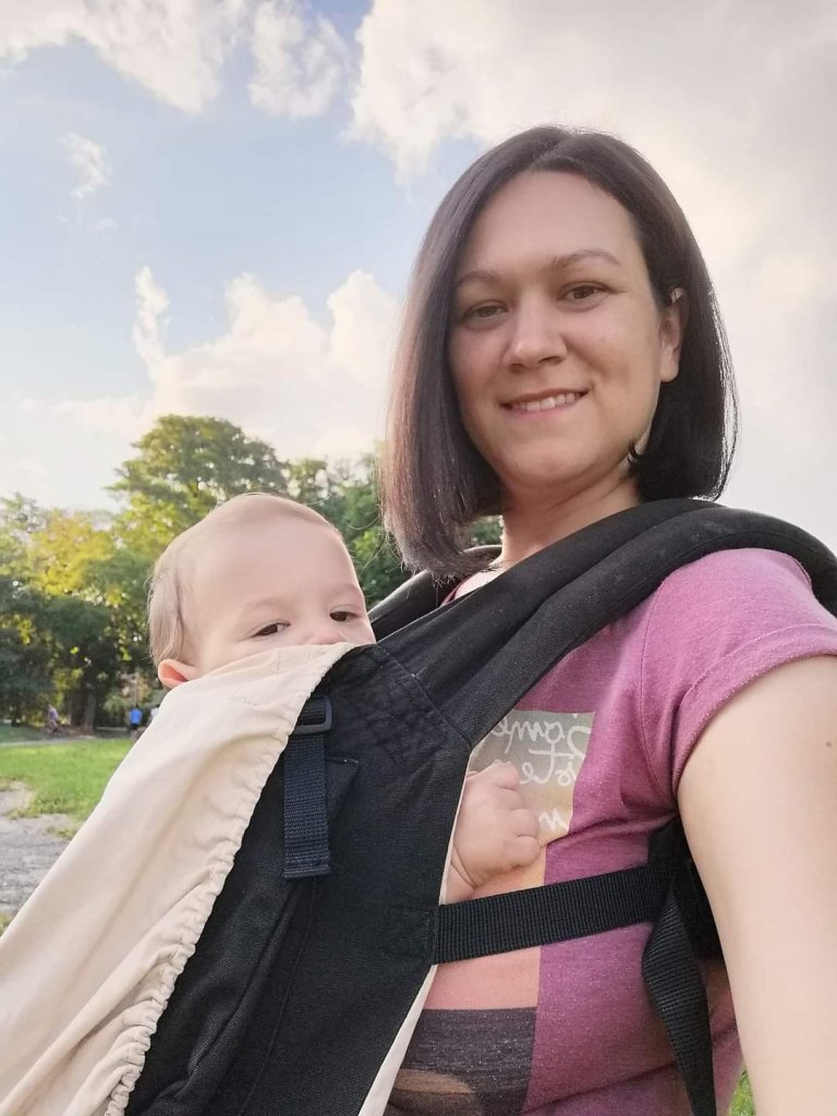 We do babywearing and enjoying it! Carrier is beautiful and easy to put on. Baby is 10 kilos, but I do not feel it at all, thanks to the carrier. Also, baby likes that her hands are free and loves to be worn. Thanks for existing of this group! 🙂
