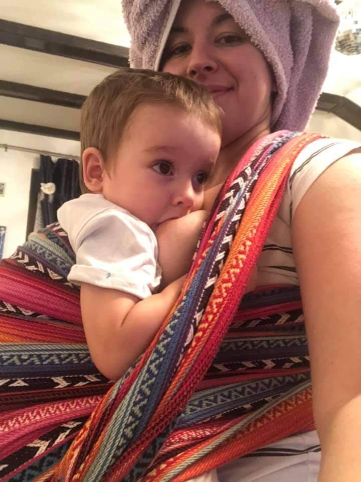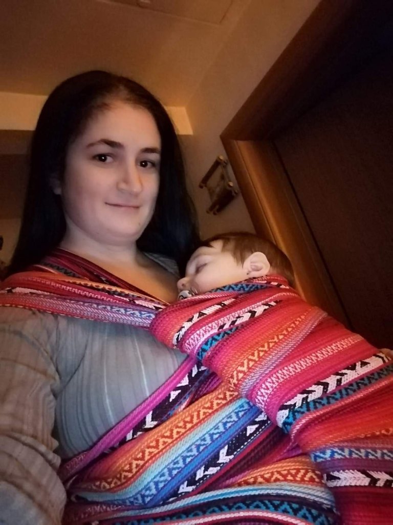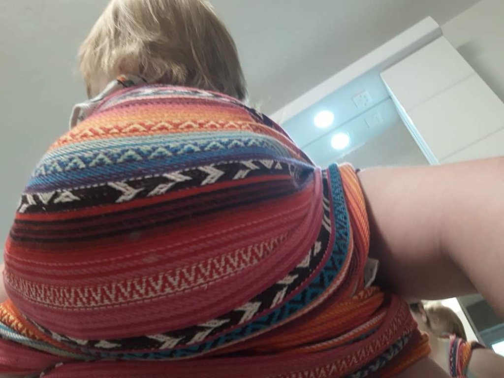 Thanks to Lenine putujuce nosiljke (Lena’s traveling carriers) and Almitra Tattva- Babywearing Art Studio i had the opportunity to test beautiful Larona sz6 100%cotton for few days. Baby is 18 months old and around 11kg weight and wrap held him just fine. It is very thin, and soft and cushy, I’m sure it is great also for smaller babies. And the colour is wery joyful and bright. Thanks again for this lovely opportunity❤❤❤