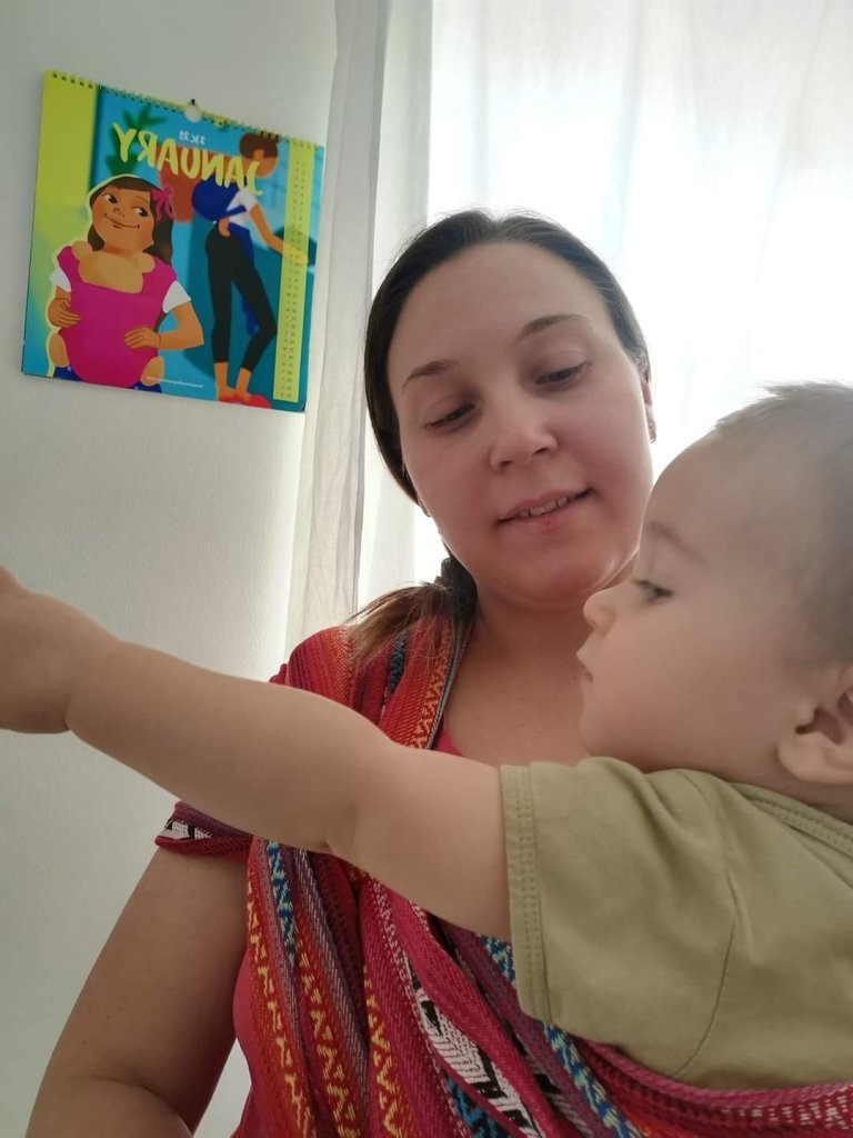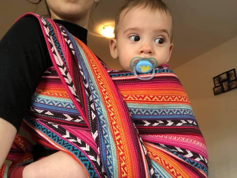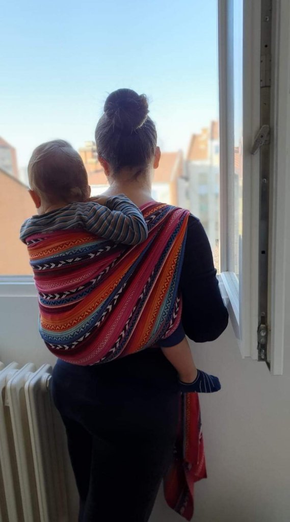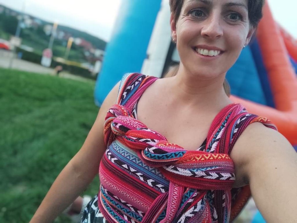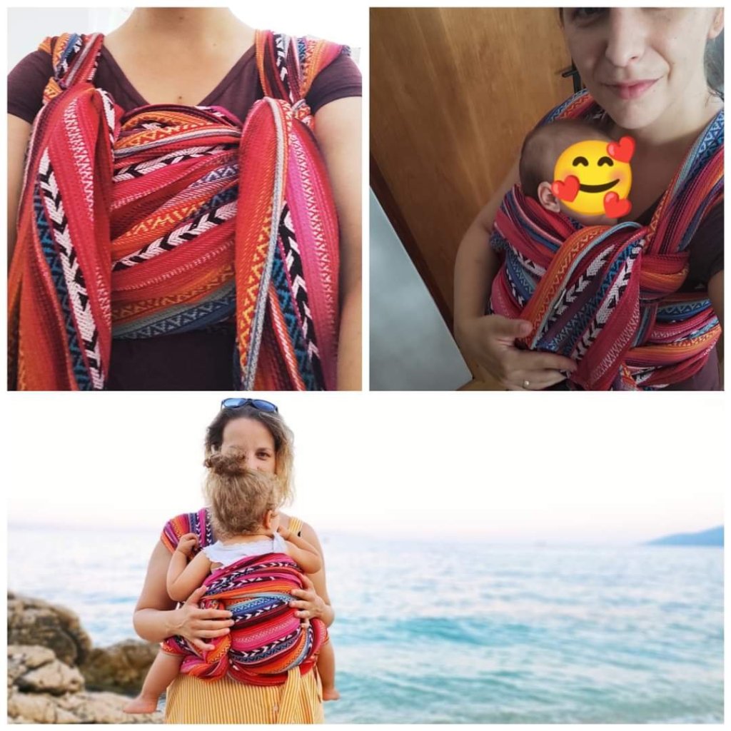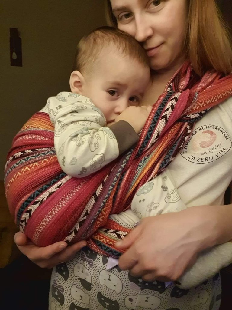 Thanks to Lenine putujuce nosiljke (Lena’s traveling carriers) I tested Larona, which I applied to exclusively because of the colors, I liked the colorful wrap. When she arrived, the colors fell to second place, because I was delighted with the ease of rolling, she is extremely thin but at the same time firm, she holds my boy who weighs 10 kilograms.