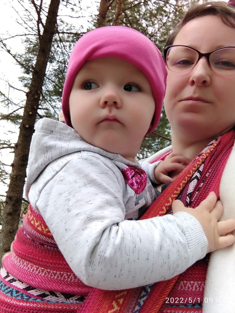Wow, wow, wow… So, what I realized is that my most favorite wraps are all from Almitra Tattva- Babywearing Art Studio ! This wrap is absolutely stunning!!! Its soft yet firm and grippy! Colors are gorgeous, pattern is beautiful! I feel so wild and free while wearing it xD I love it!! Baby is 1.5 y.o. and about 11kg (he loves it too)