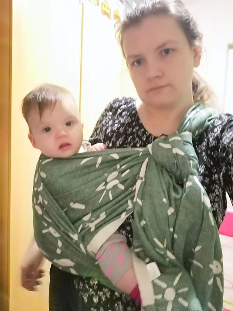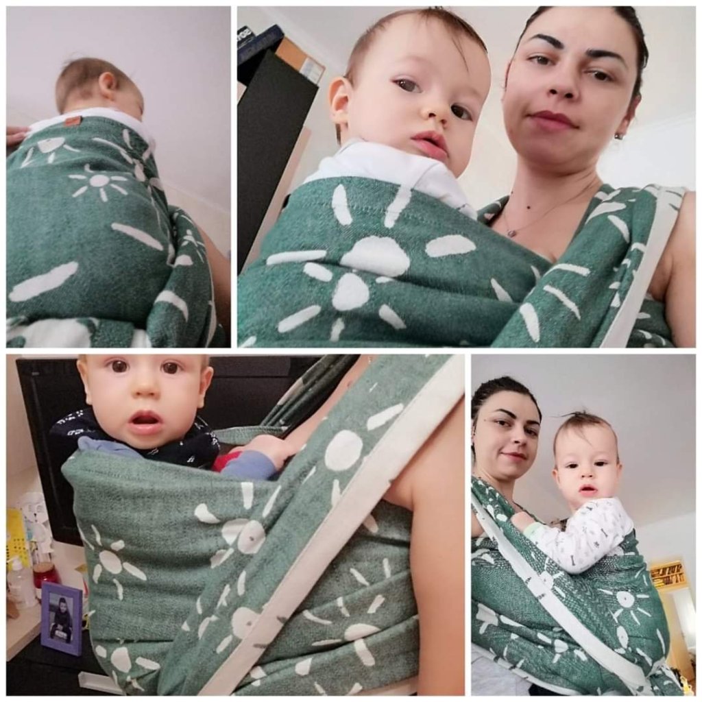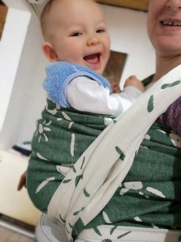 Thanks to Lenine putujuce nosiljke (Lena’s traveling carriers) I had a chance to test this beautifull wrap. I love the combinations of materials, because I have a toddler and this wrap is totally toddler worthy. It’s just starting her testing tour so it’s brand new and not fully broken yet, but when it breaks it will be a true gold. I love green and the sunshine patern, it gives me a better mood in these upcoming rainy days. I would recommend this wrap for everyone ☀️💚