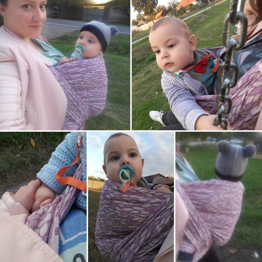 We tested Nona Imagine Wisteria Lane, size 7. My son is 9 months old, weighing 11kg. This is the first woven wrap we have ever tried, therefore, I can’t make a comparison with other wraps of this type. Although it was hard to get along with this wrap at first, I enjoyed it because it provides a feeling of incredible closeness and there are countless ways to wrap the baby and play with ties. It wasn’t easy for me to adjust and tighten everything, due to my lack of experience, and I don’t think it’s good for beginners. The biggest advantage is that no matter how I tightened and adjusted, I didn’t feel any pressure on my shoulders. The design is subtle and delightful. I’m really thankful to Lenine putujuce nosiljke (Lena’s traveling carriers)for this opportunity and I’ll always remeber our first time in woven wrap.