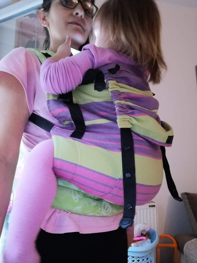 Thanks to Lenine putujuce nosiljke (Lena’s traveling carriers) and DracoMom Carriers- ex ZMajčice we had the opportunity to test the toddler size carrier. The carrier is very comfortable and soft. It is made entirely of woven wrap and is beautiful. I like that the panel is easy to adjust. My girl is 13 months old and about 10kg, she is about 88cm tall . Thank you so much for the opportunity to enjoy this carrier. 👌🏻😍❤️