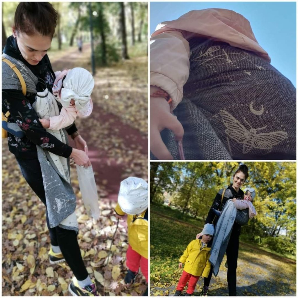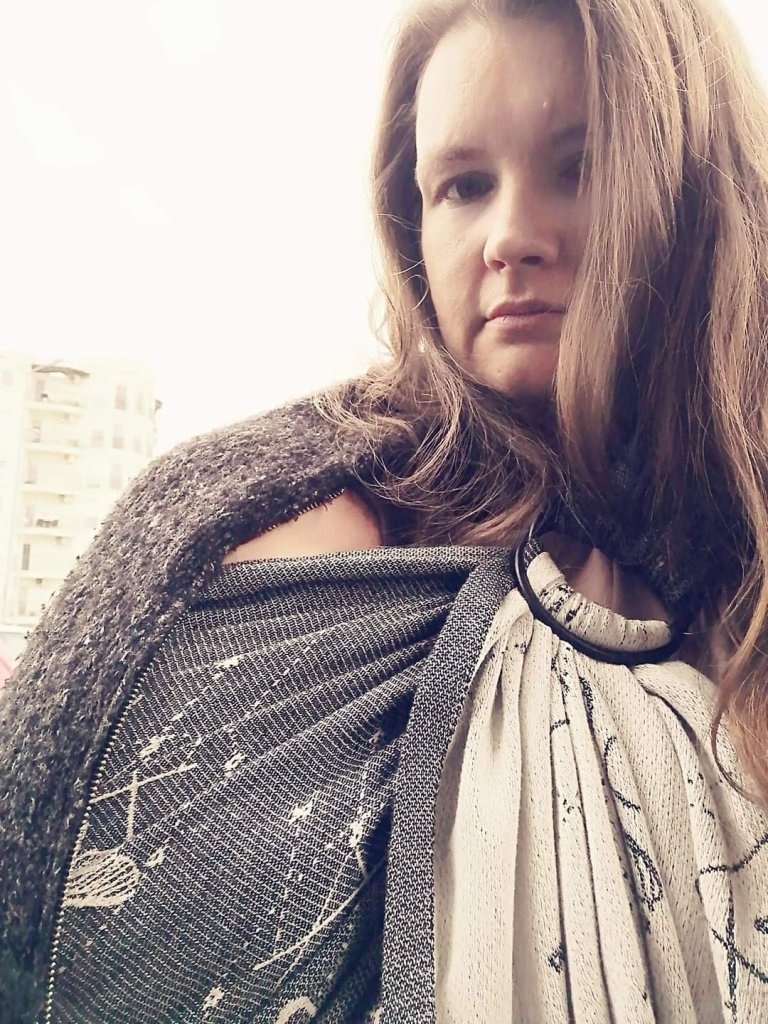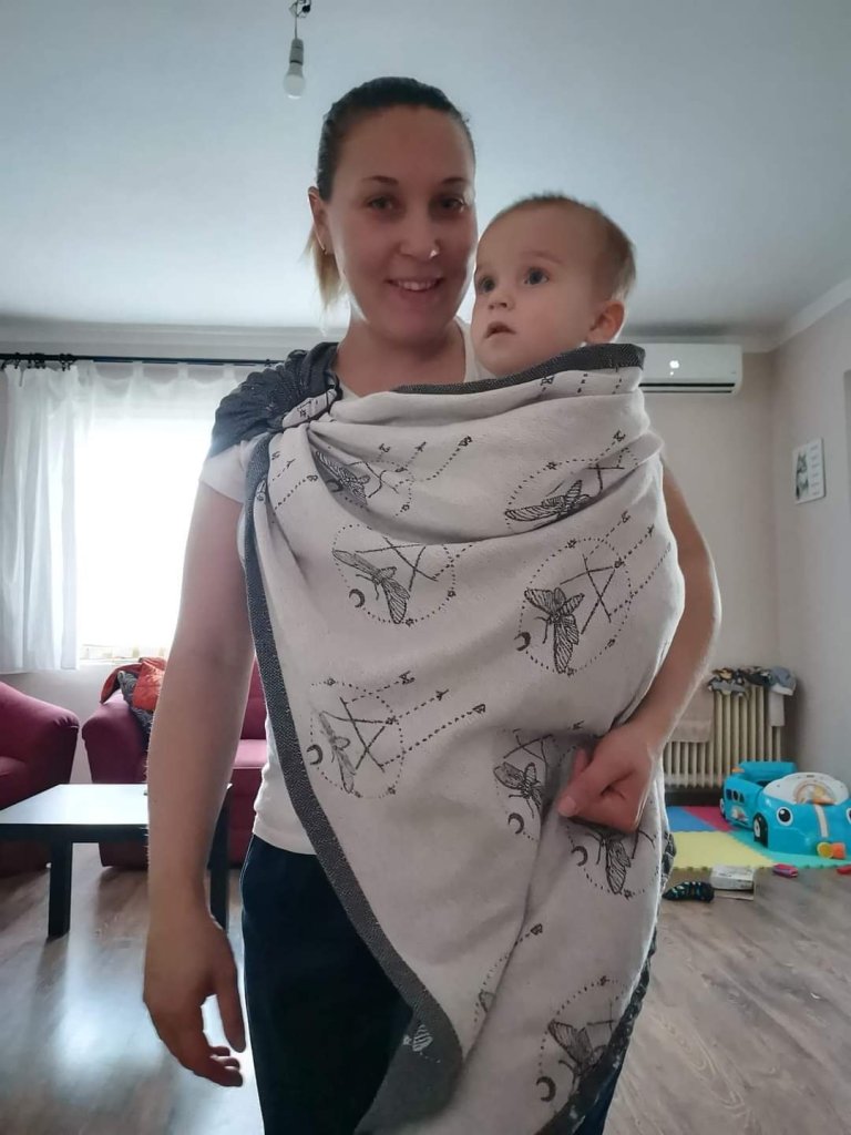 I have tested this magnificent ring sling for a couple of days, and the only thing I could say is that it’s truly an inspiration for babywearing. I have tried Wild Slings Les ténèbres as a wrap a couple of months ago and it really blew me away, so it happened again with this sling too. I really love vegan wool, the wrong, white side is so perfectly soft and cuddly, and i love the color and the texture of the grey side as well. My baby is now 13 months old and around 8 kg, and she liked it too, and that doesn’t happen as much lately. So, to wrap it up😉, this is something I would love in my stash as a wrap but as a ring sling too. Thank you for an amazing wrap, Wild Slings, and thank you for this experience, Lena’s traveling carriers and Kristina Kostic, it was a dream come true.