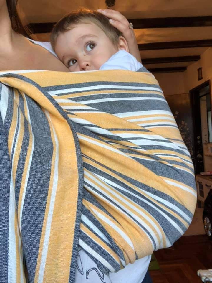 This is pure perfection and that’s all I shoud say about it. I’d really really wish to have it 24/7. Colors are great, modern, for autumn, summer, for a boy or a girl. I adore this combination of yellow, white and gray. It is soft, comfortable, strong and perfect for winter because is double layered. Perfectly held my 10 month old who weighs 11kg. We had such a nice time hosting it and a sad goodbye. I recommend this sling to everyone, it is just perfect. Thank you Lenine putujuce nosiljke (Lena’s traveling carriers) and STORK Ring Sling for his opportunity.