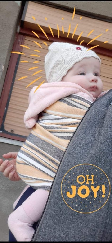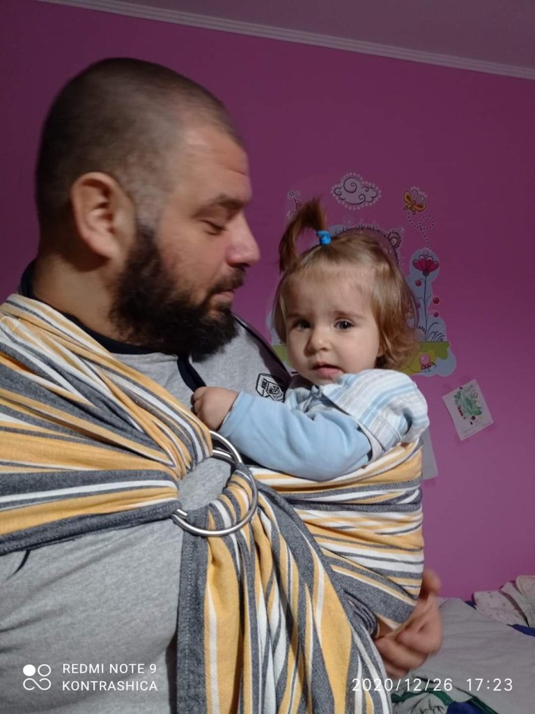 I tried this beautiful RS with beautiful colors, but unfortunately not very useful because the cold prevented me. In any case, her daddy tried it, and brother. It was pleasant and comfortable to wear. Of course, I also liked it as much as I managed to wear it. My little one was seven and a half months old during the testing and a little over eight kilograms. Thank you very much Lenine putujuce nosiljke (Lena’s traveling carriers)and STORK Ring Sling for the opportunity to test this RS ❤