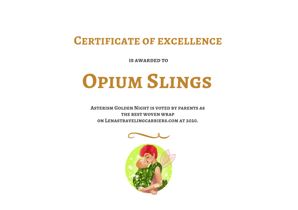 Thanks a lot Lenine putujuce nosiljke (Lena’s traveling carriers) and Opium Slings for the opportunity to test Opium Slings Asterism Golden Night wrap 30% green tea 70% cotton in size 6. 😊