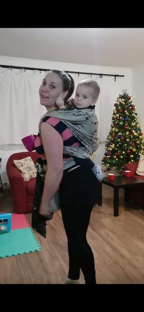 This wrap is pure love, I knew it at the first touch! It came to me perfectly soft and broken although it’s on the very beginning of the test tour. I tried it with various carries and it’s so comfortable in all of them. My baby girl is 9 months old and has around 8 kg and this wrap holds her perfectly, but I think that it would be great for heavier little bums too. Colours and the design are wonderful and so elegant. I think that it would be great match with a little black dress for some celebrations. 😊