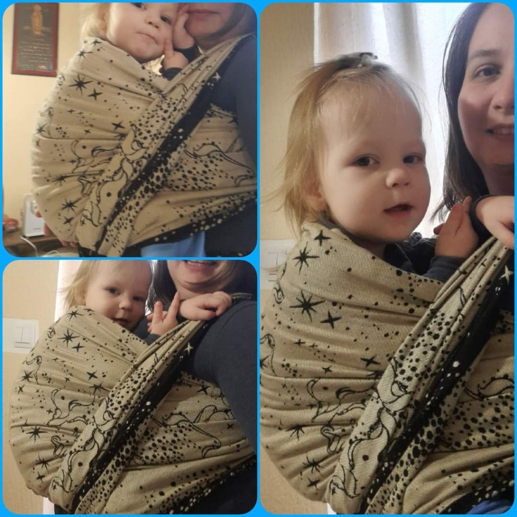 Thanks to Lenine putujuce nosiljke (Lena’s traveling carriers) and Opium Slings I had a oportunity to try Opium Slings Asterism, size 6, 70% combed cotton, 30% green tea. This is the first time I had opportunity to use wrap with blend like this. This wrap is wery soft, one of the softest I’ve tried. The wrap is so comfortable. It is so easy to use and both my baby an me loved it. I didn’t feel the weight of around 12 kg at all. Thanks again for this great opportunity ❤️❤️
