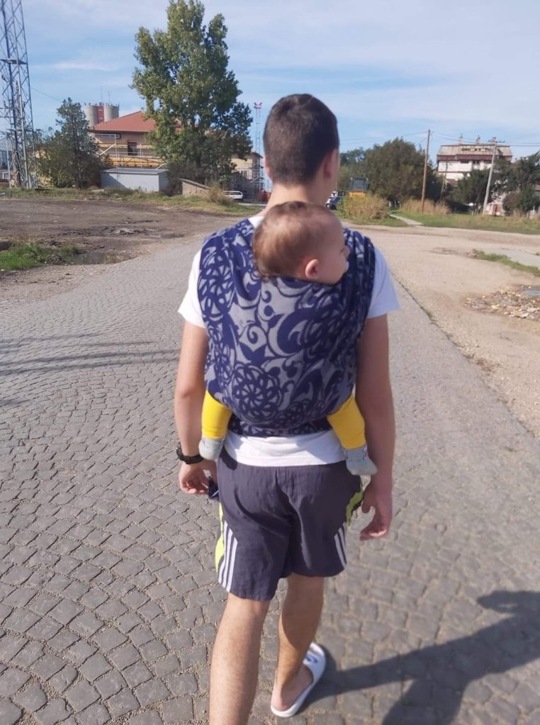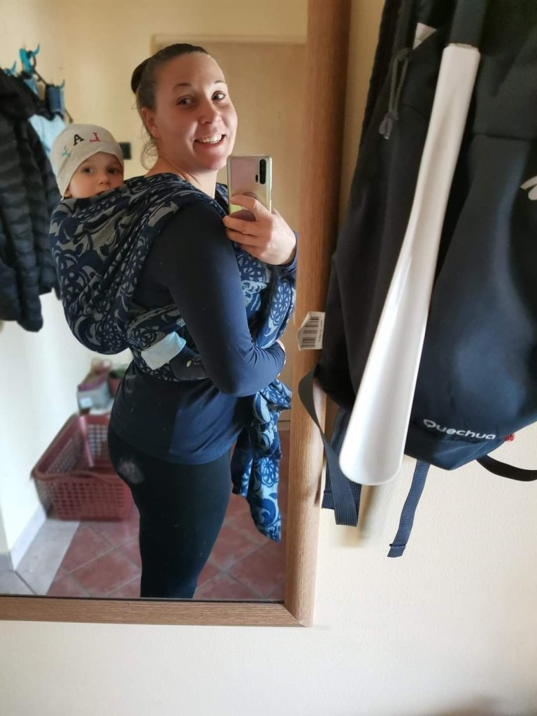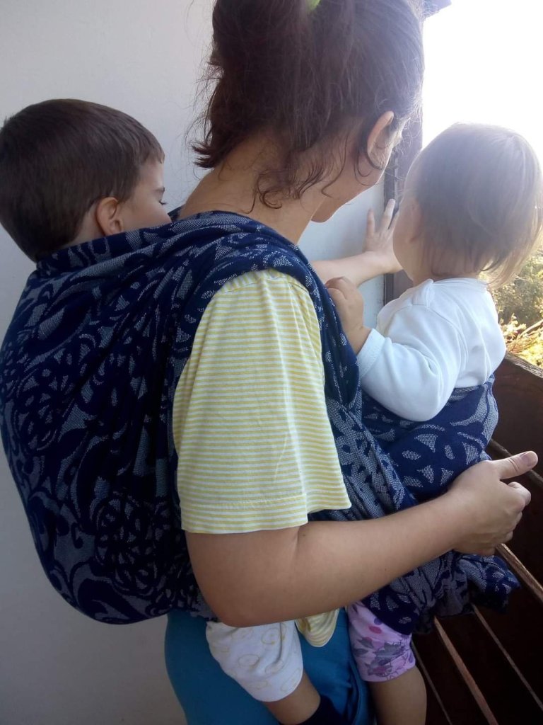 Thanks to Darija Maho for enrichning the Lenine putujuce nosiljke (Lena’s traveling carriers) collection with this beautiful Lolly wrap. It is amazing to wrap. I did not feel the weight of my little kne who is 15 months old and has 9kg. When carrying a boy of 4 years and 15kg it was comfortable for both him and me, as well as for a hoy of 5,5 years and 17kg. I even tried tandem carry with this wrap. I feel sorry for not learning any fancy finishes. Thanks alot for the opportunity to test this beautiful and soft wrap.