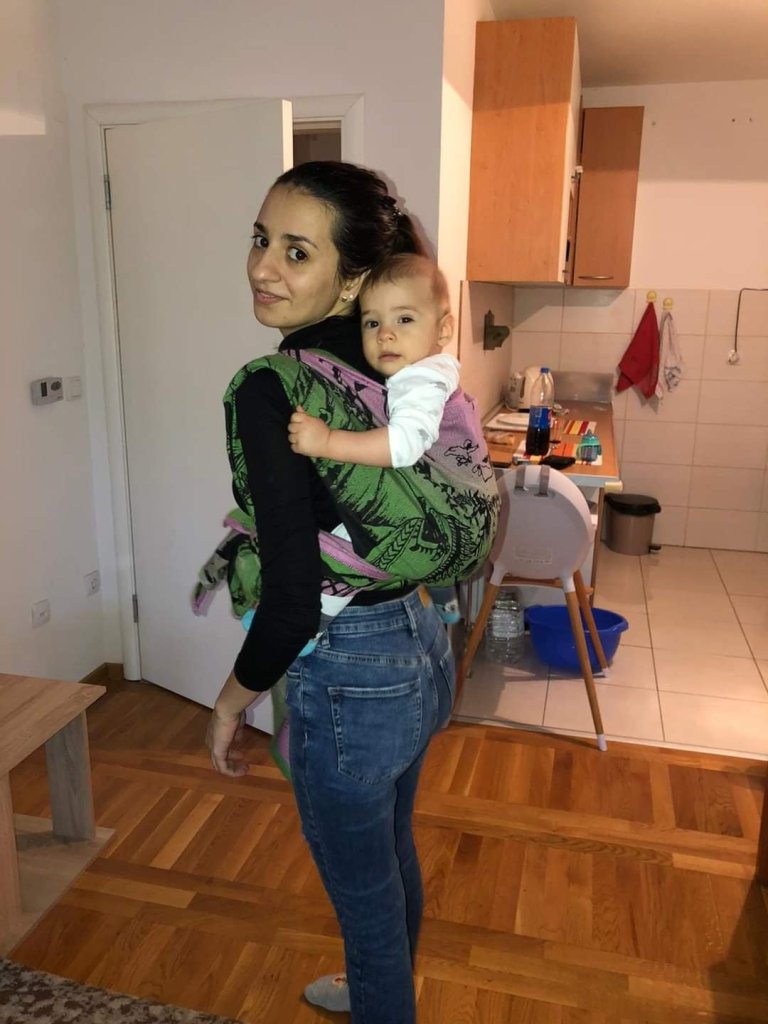 Thank you so much Lenine putujuce nosiljke (Lena’s traveling carriers) and Geek Slings for this wonderful scarf which is great for both small and larger babies. It’s easy to spot and if it’s bigger in weight, it was something I need in terms of weight and length! The baby was 19 months old and 9kg. One boy 15 kg and size 110,116 4.5 years. Another boy about 17kg, size 122 and 5.5 years. We wore it comfortably. I did not feel their weight even in long walks. All the best in terms of comfort and a very nice design !! Praise!!!