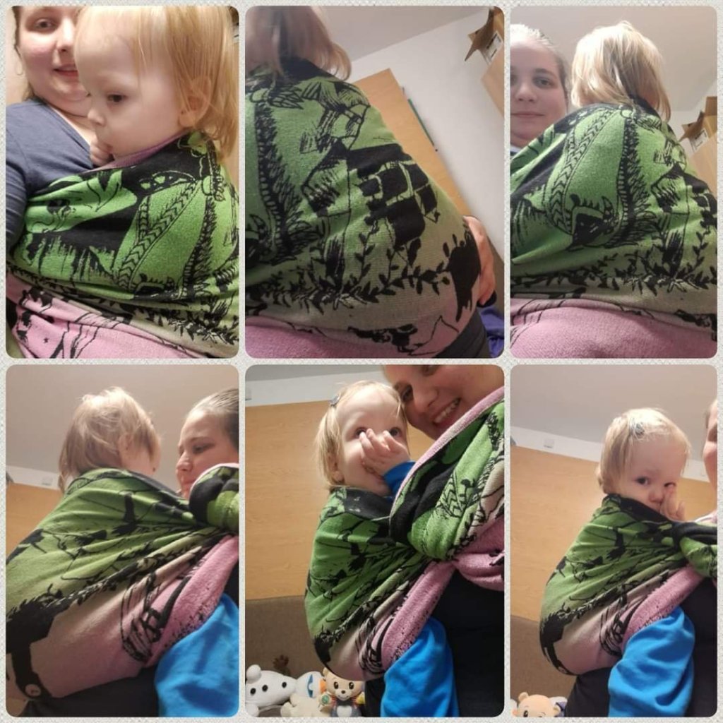 This is one nice designed wrap with one of the most beautiful storie motive from our childhood. I love childish motives on wraps and carriers. It’s really soft, moldable, little thick for me because I’m very inexperiened and had trouble to tighten it up properly, but we enjoyed its softness. It was interesting to try this size which is -2 my base size, I really liked it. The tester is 13 months old weighing 12-13kgs. Thank you Lenine putujuce nosiljke (Lena’s traveling carriers) and Geek Slings for this oportunnity. I recomend this wrap.