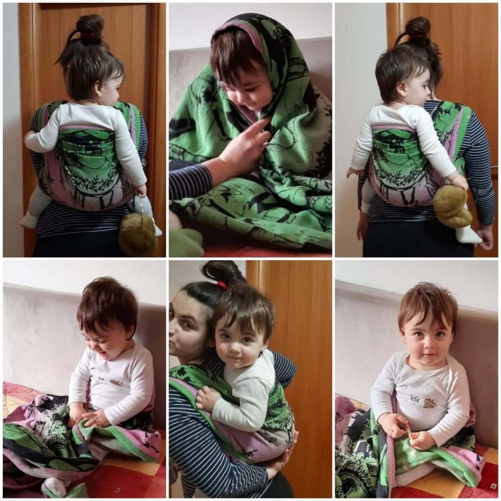 This is, probably, one of my favorites. I loved this wrap, the color, the design, the way it tightens, the length, everything. I really enjoyed this one, my almost 14 month old and around 9 kg baby too. I am a Little Prince fan but my baby’s godmother is Petar Pan fan and I am only sorry that because of corona situation, she couldn’t come to visit us and maybe try it on. Thank you for this test, Lenine putujuce nosiljke (Lena’s traveling carriers) and Geek Slings 𤩠we have tried to make a bit of Magic with it, with some bubblesš