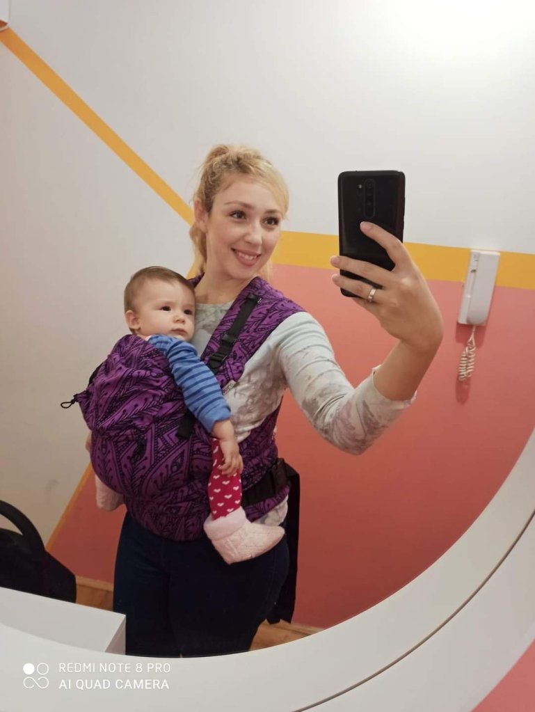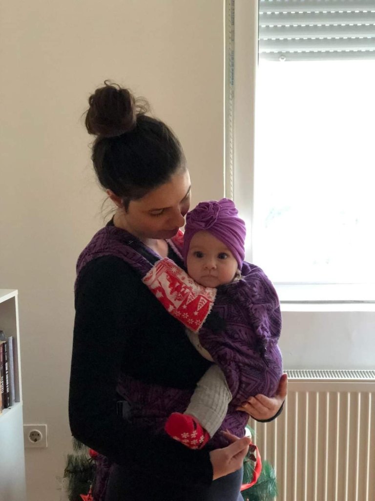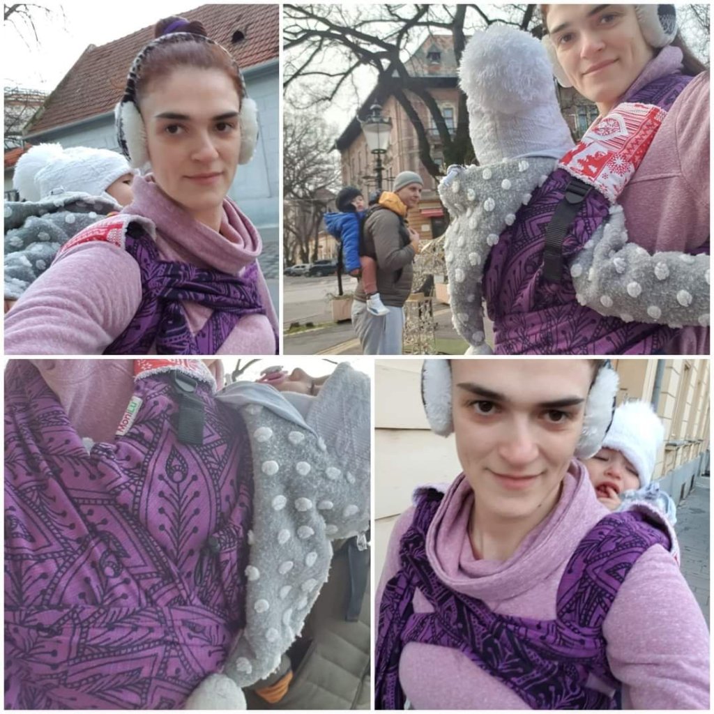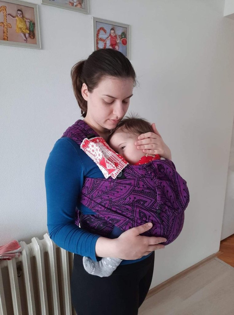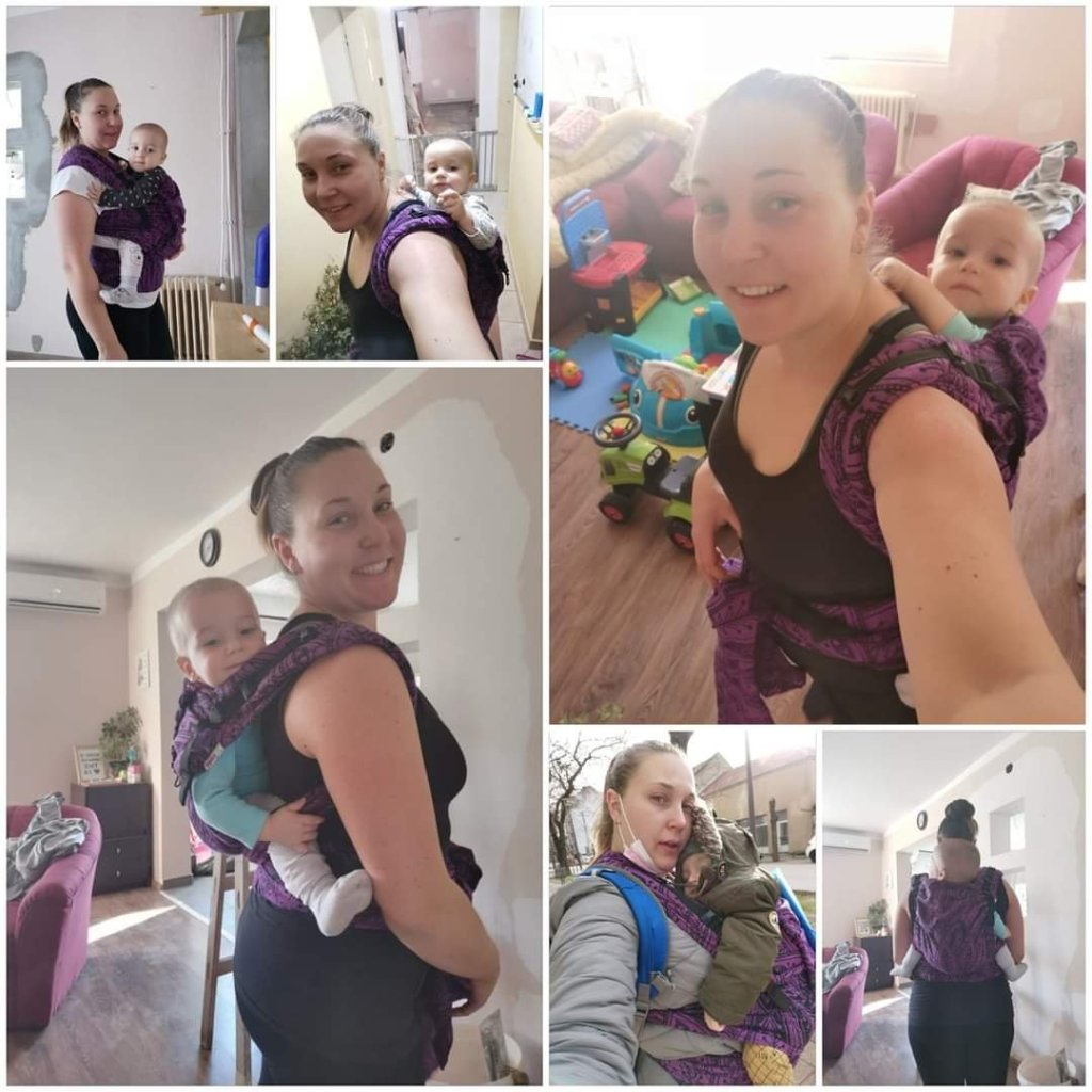 When it was announced in the group that this type of carrier would be able to be tested, I immediately signed up and eagerly waited for it to arrive. This type of carrier combines the best of the carrier and the wrap. A belt that fastens as an easy and quick way to accommodate a baby, and the upper part, which consists of tine wrap, give flexibility and comfort that the wrap provides. I have a problem with most stretchers with straps that bother me and I can’t easily adjust it to be comfortable around my armpits. I didn’t have those problems with Uni Tai because it provides that comfort of a wrap,and the purple color is just to my taste. My baby is still not sitting on his own and we are not carrying him on his back, so I am still curious to know if I would be as comfortable as before. At the time of testing, my baby was about 7.5 months old and just under 8 kg. Thanks to our wonderful Lenine putujuce nosiljke (Lena’s traveling carriers) group for the opportunity to test various stretchers