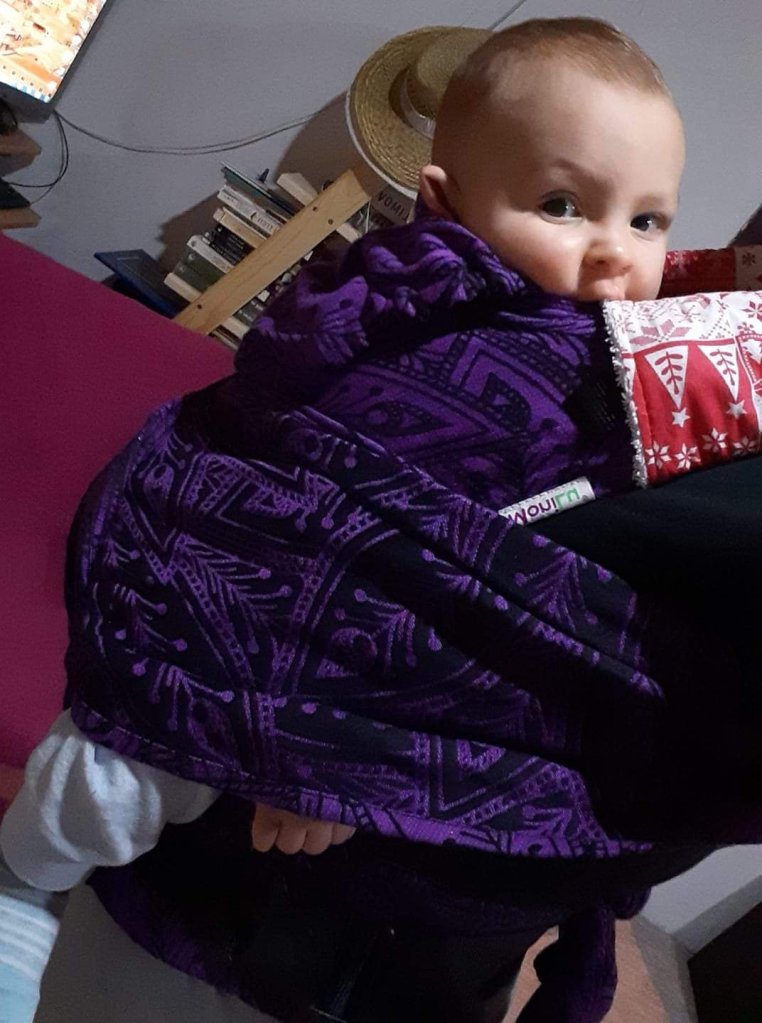Thanks to Lena’s traveling carriers and MoniLu, I had the pleasure to test this purple beauty. This was my very first Uni Tai I had tried, and I been surprised how it was comfortable, if you put and tied properly you can walk a marathon without the feeling of baby weight. Unfortunately, I didn’t try back carrying because at the moment I tested, the tester was not sitting (7 kg, 7 months).