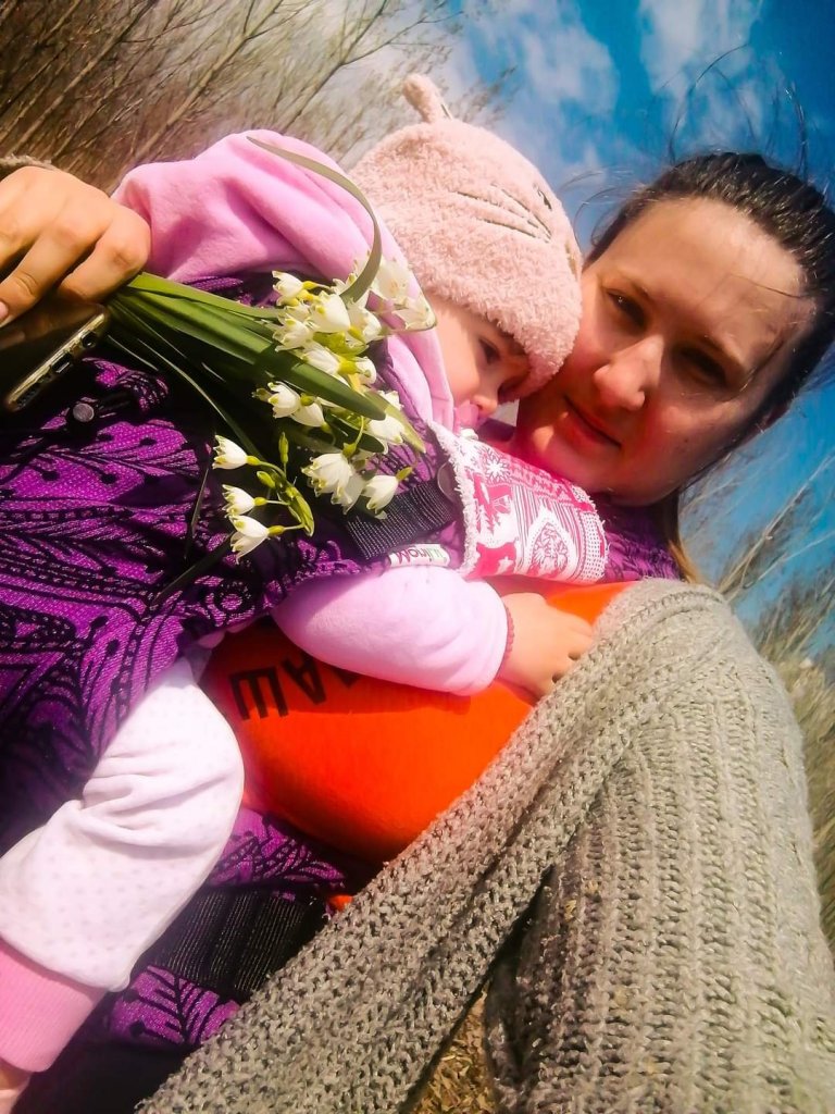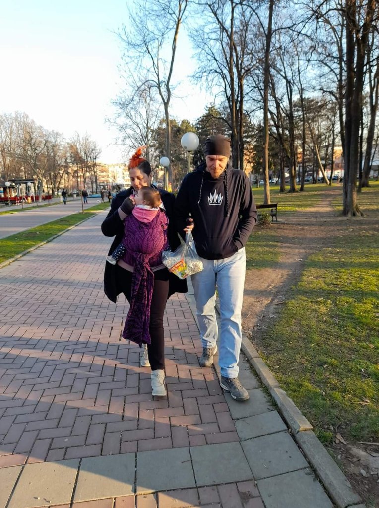 Thanks to Lena’s traveling carriers we have a chance for babywearing. On this pic, yesterday it was our first babywearing day. Isidora is 13 months old, 10kg and about 77cm. MoniLu half-buckle carrier we use is very comfortable for caring. I thought that instalation would be difficult but it is so easy, it took 5 minutes to be completed.
