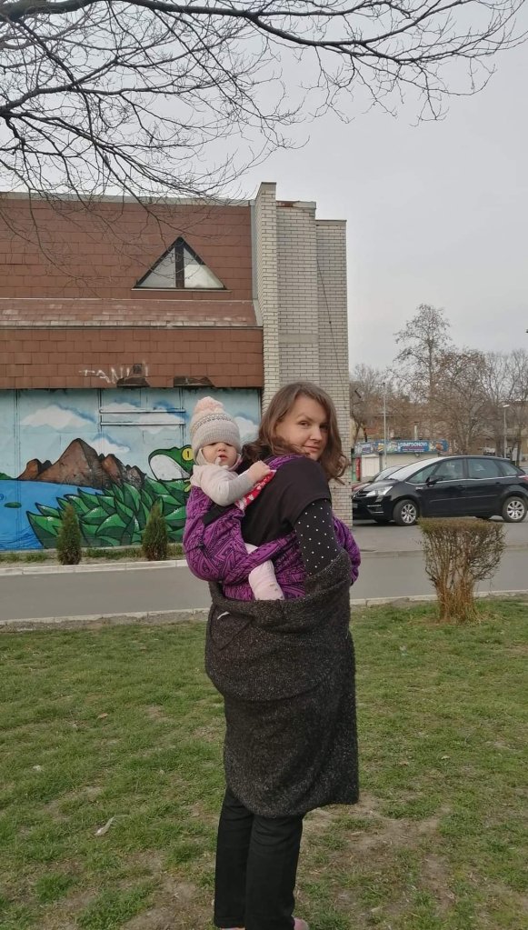 But then I tryed it on the back, and that was bingo. We love carrying on the back and this is our thing, especially when I realized you can do different finishes, not just tie it at the front. A belt could be a bit wider for carrying on the back, especially if you have postpartum belly, but it’s only worth of mentioning.