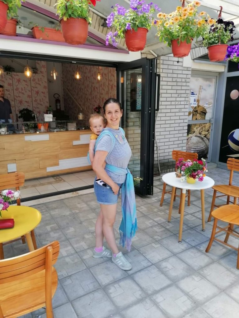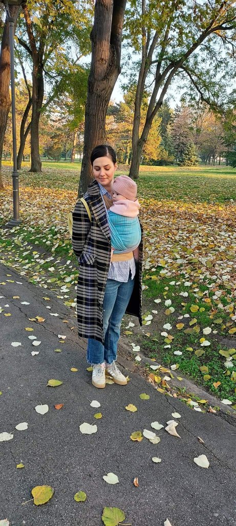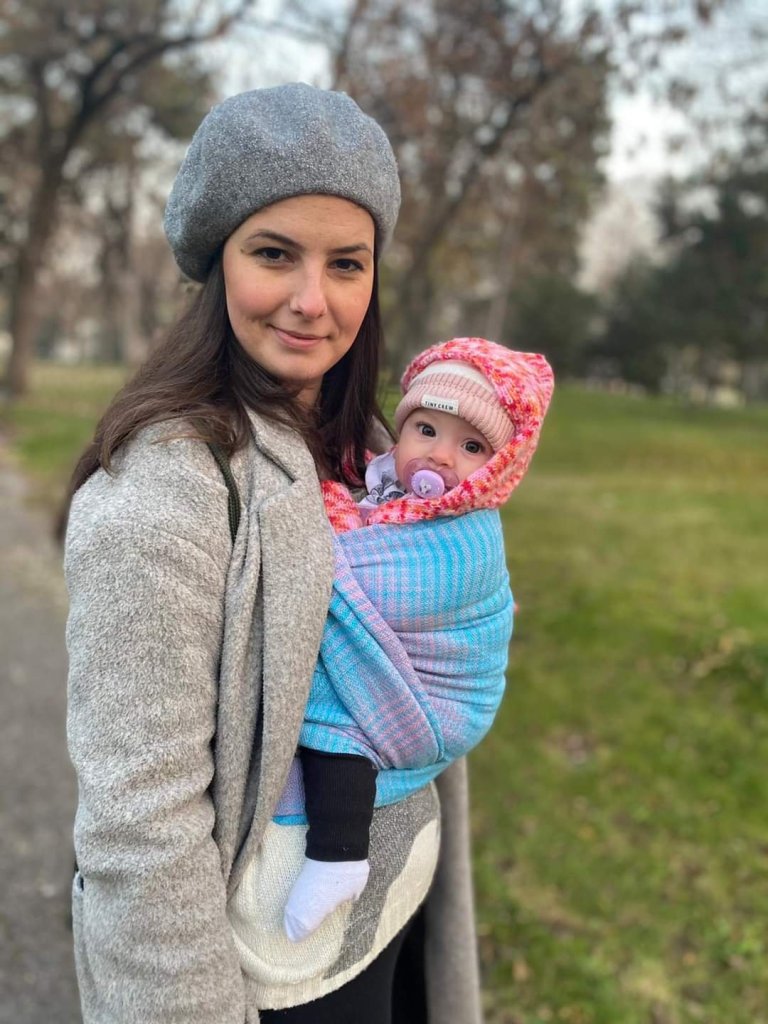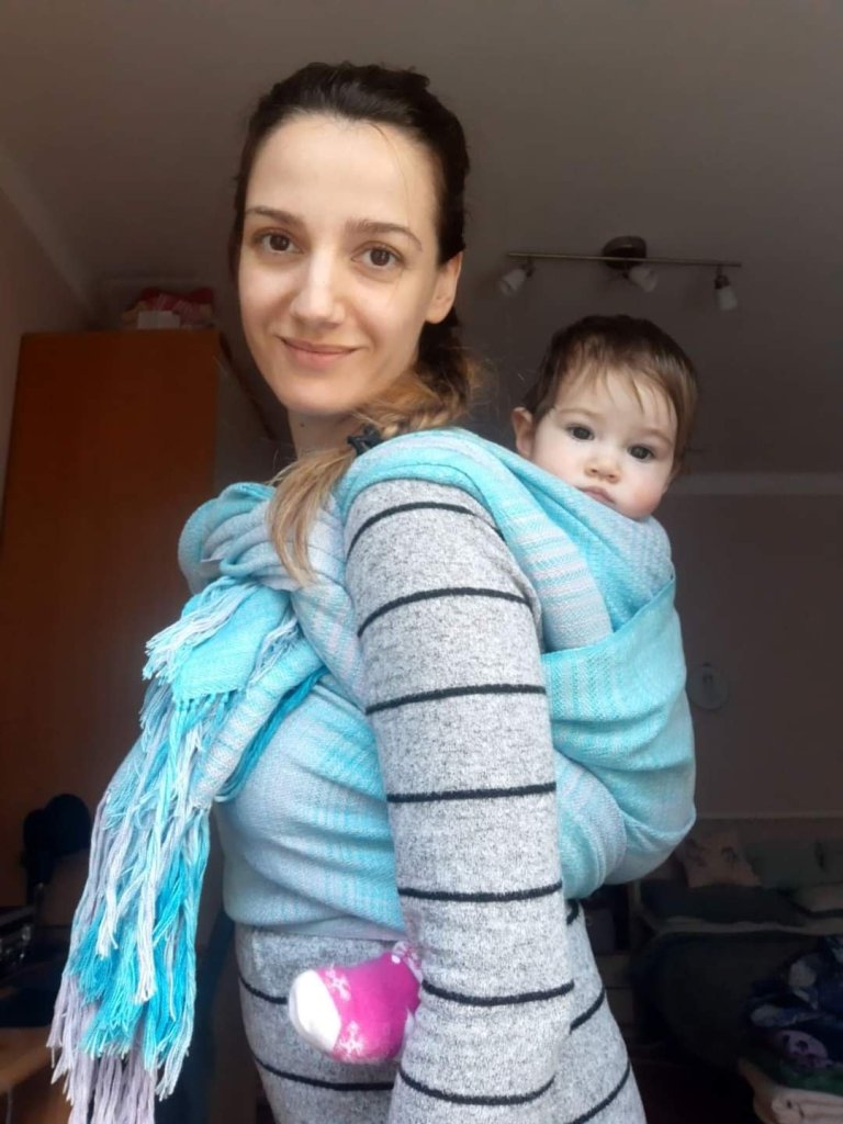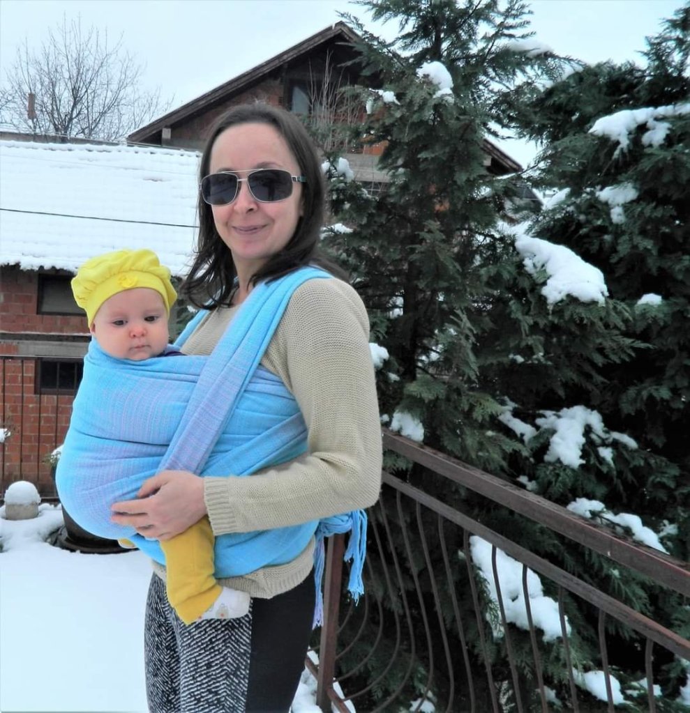 As this is a hand-woven wrap, you can feel how much love and dedication is woven into it. The wrap is very soft, and also very firm, so it was very pleasant to carry a baby of 8.5 months and 8 kg. Unfortunately, we did not enjoy the beauty of this scarf enough because I have problems with excess weight from the second pregnancy, and then this wrap was short for most of the carrying stiles I use. However, I am very glad that I applied to test this wrap and was able to get to know the work of the wonderful Vesna Djinovic behind the Feather Handwoven brand. I am also very grateful to the Lenine putujuce nosiljke (Lena’s traveling carriers) group that allows us to test various wraps and meet new brands.