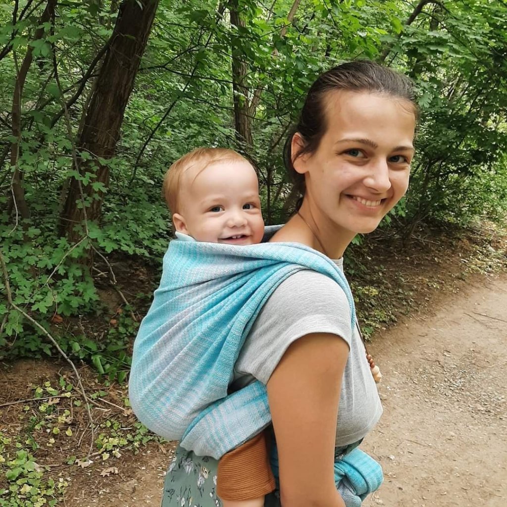 It was my first time to try hand woven wrap, and I’m delighted 😍. It is a beautiful for eyes and for skin -fantastic combination of colours, soft enough, airy, and at same time strong enough to hold 8 months and around 9,5 kg weight baby. This one will be always special for me, because I have had first workshop about back carry with it,and it was wonderful experience, so encouraging. Thank you so much for this opportunity Lena’s traveling carriers and Feather Handwoven ❤️ it was a big pleasure for me and my baby.