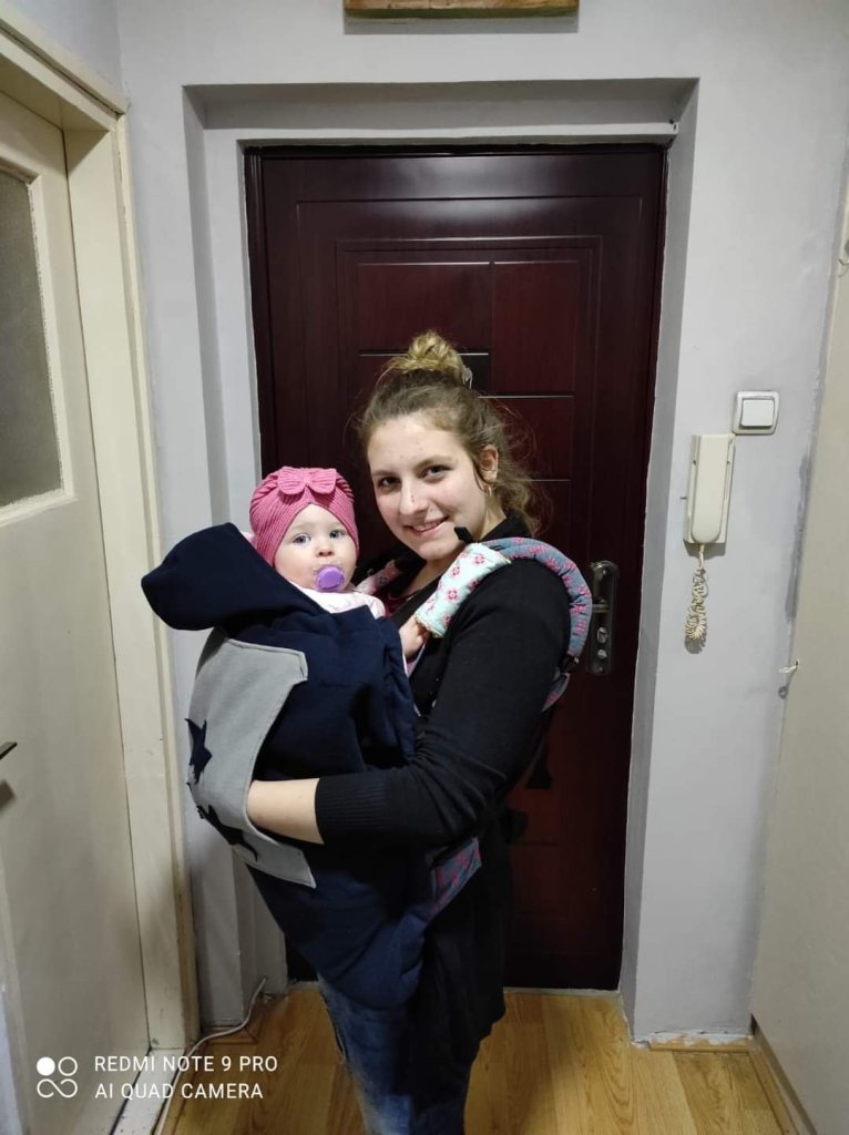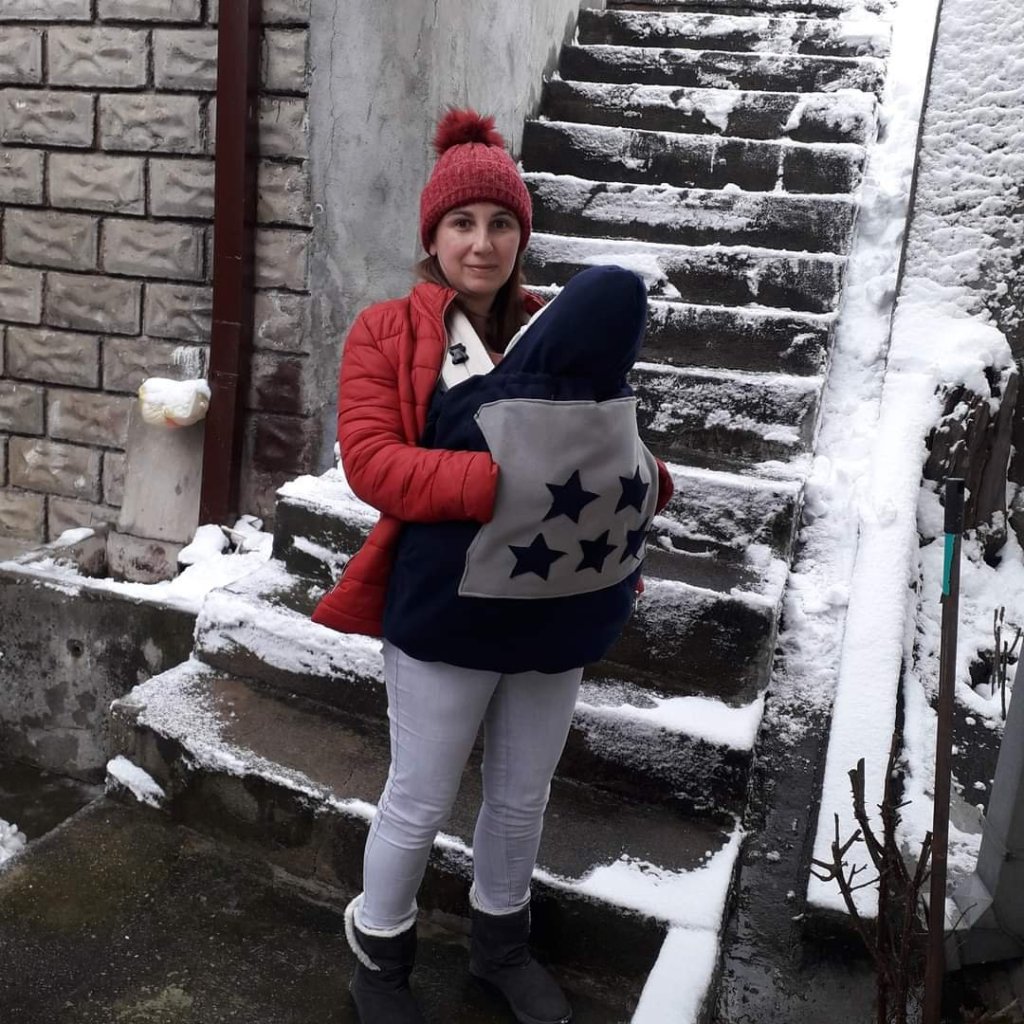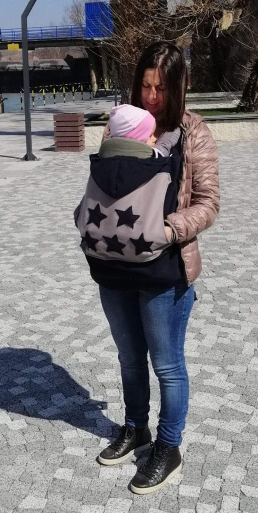 We had opportunity to test baby wearing cover made by Anđelčić Kreativna Radionica. The cover has two layers and we use both because it was snowing and very cold. It is confortable, warm and easy to put on. We didn’t need to wear a jacket with only a thicker sweatshirt. I highly recommended this cover.