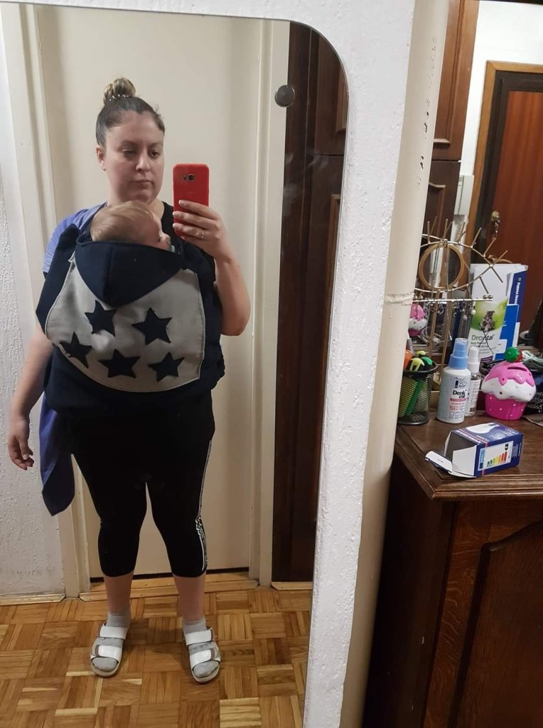 Thanks Lena’s traveling carriers and Anđelčić Kreativna Radionica for the opportunity to try this warm cover! It is warm and works great with our carrier, Issara One due to the fact that it is not attached directly to the carrier straps, but has its own. However we did have an issue of the straps falling from the shoulder, perhaps not tight enough? Did not try criss-cross. The inside layer is a bit longer than the outside one so it spills out a bit. I loved the big pocket for my hands and that it was 2 layered so I could take one out if it is not too cold. Thanks! ❤ #andjelcic #anđelčić #handmadeclothing #handmade #madeforbaby #babywearing #babywearingcover #babywearingmom